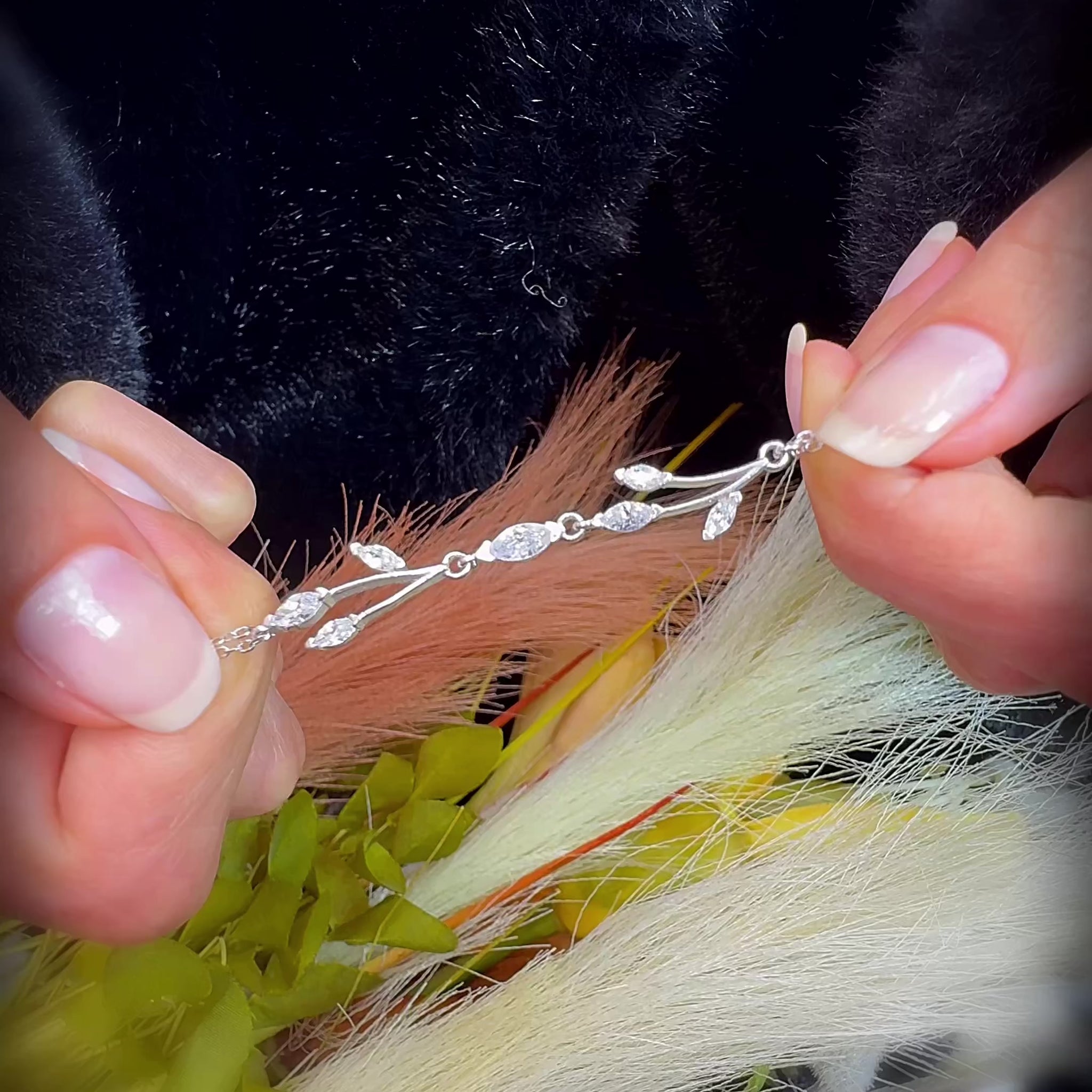 Botanic Olive Branch CZ 925K Sterling Silver Bracelet