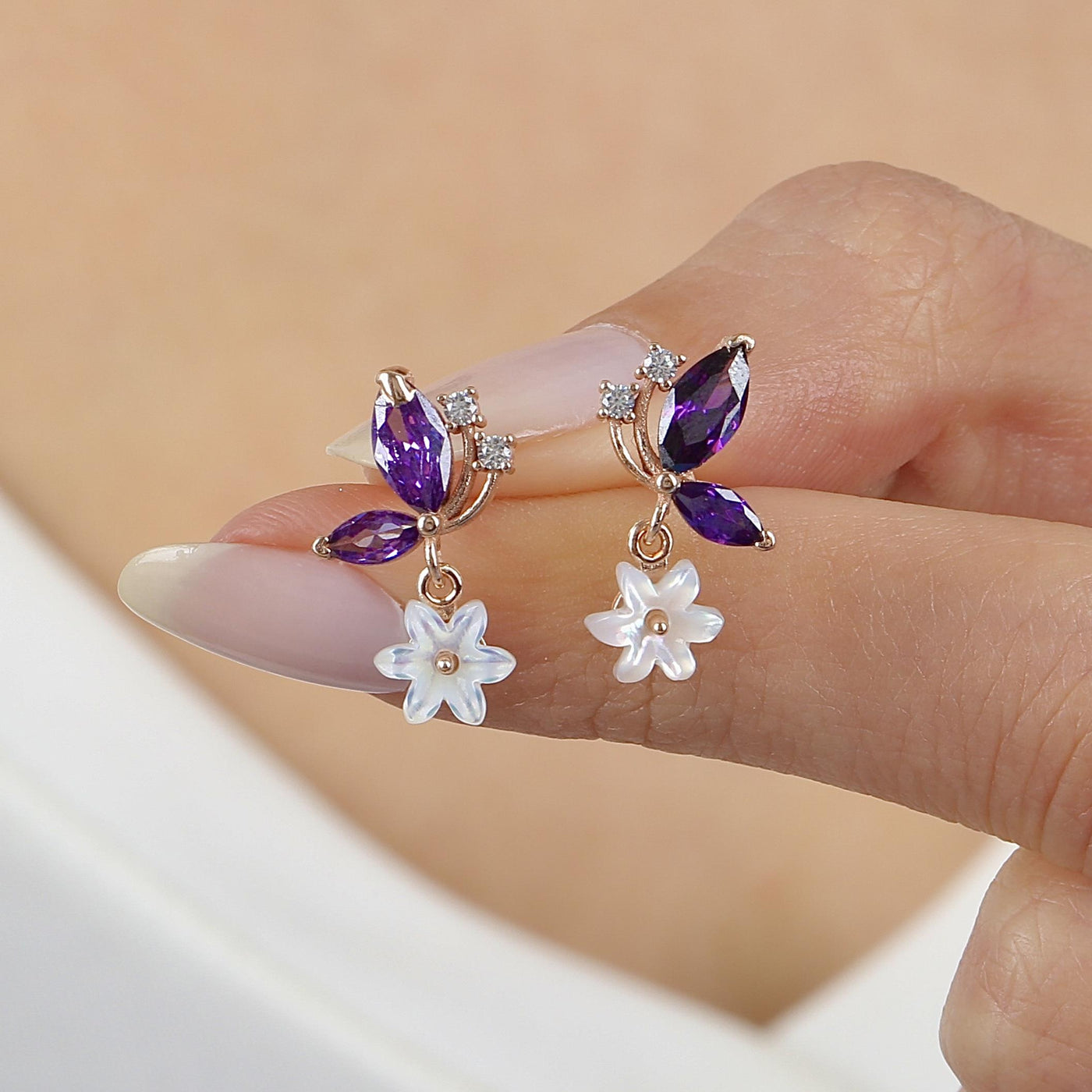 Butterfly Flutter Magnolia Amethyst Color CZ Rose Gold 925K Sterling Silver Earrings