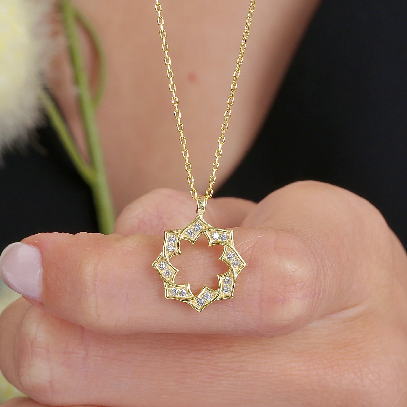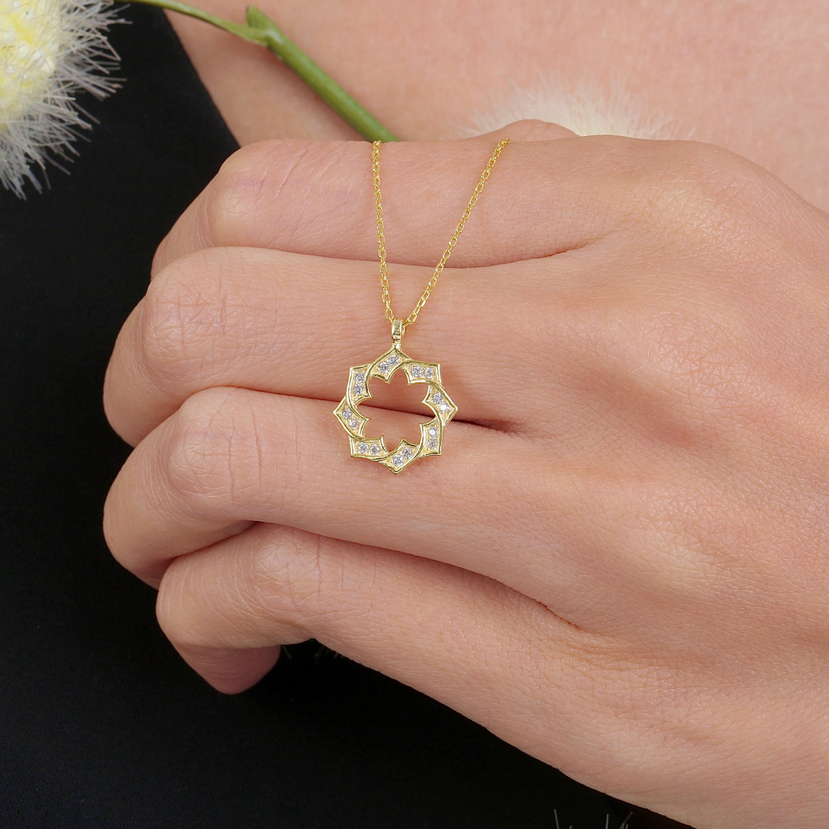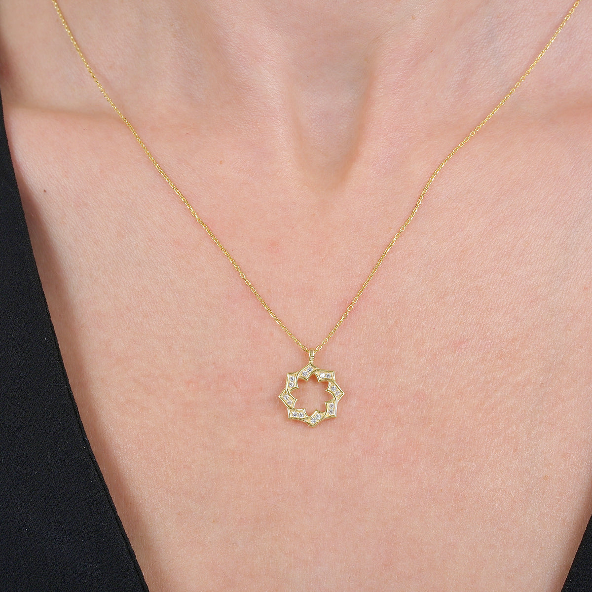 Celestial Mandala Bloom CZ 14K Gold Necklace