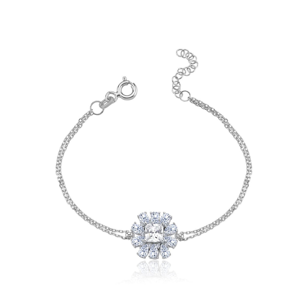 Crystal Crown Bloom CZ 925K Sterling Silver Bracelet