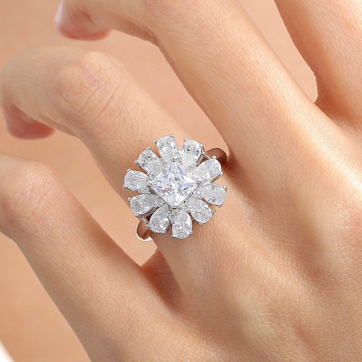 Crystal Crown Bloom CZ 925K Sterling Silver Ring