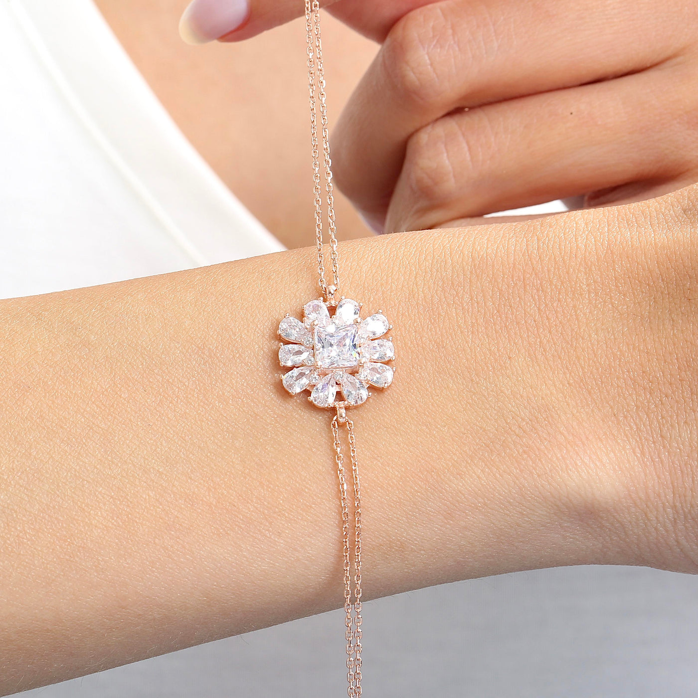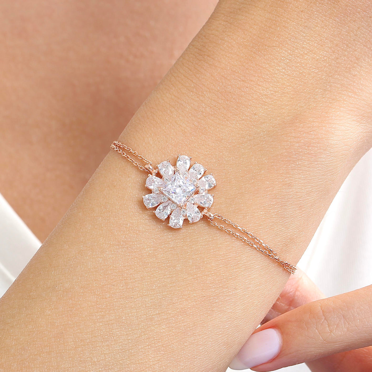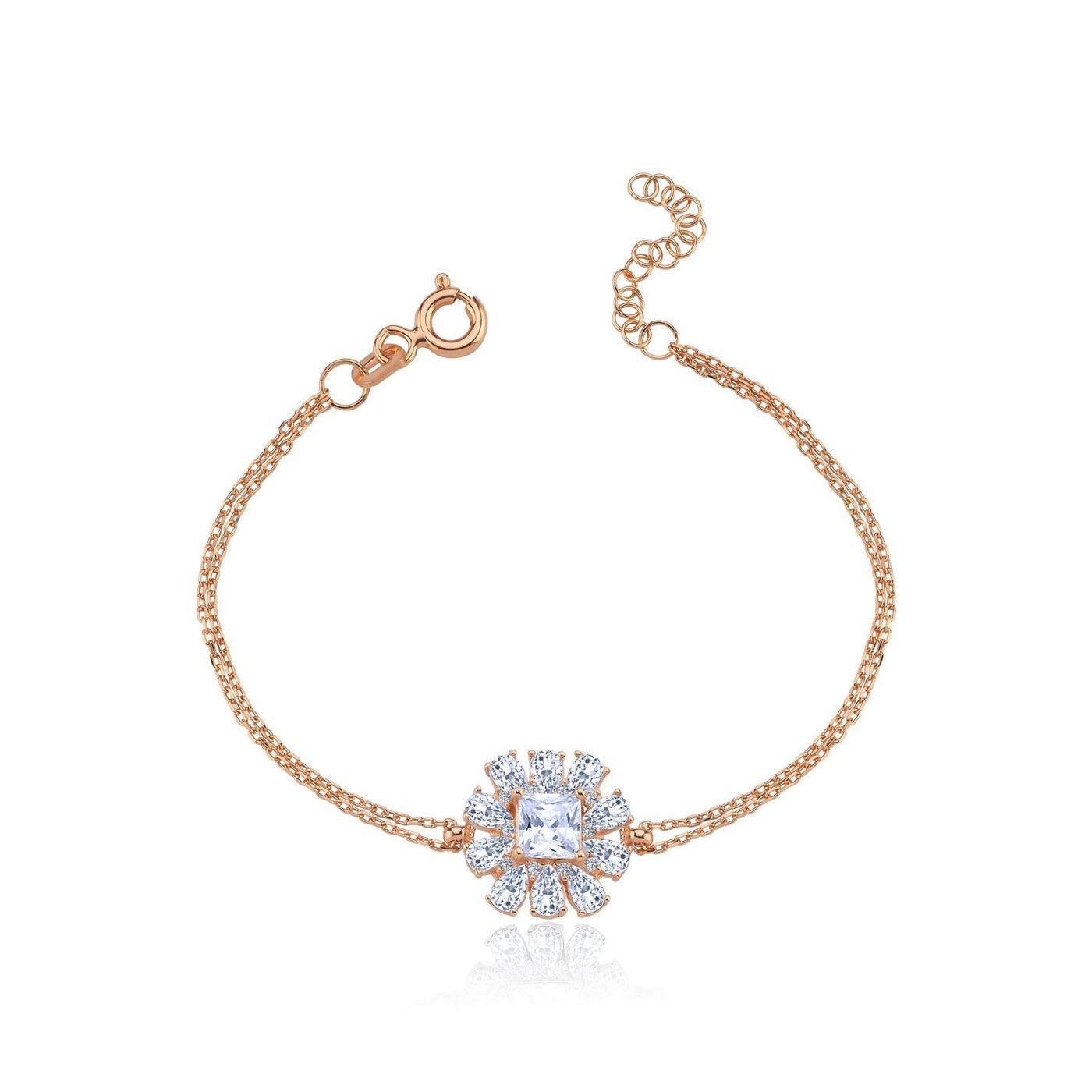 Crystal Crown Bloom CZ Rose Gold 925K Sterling Silver Bracelet