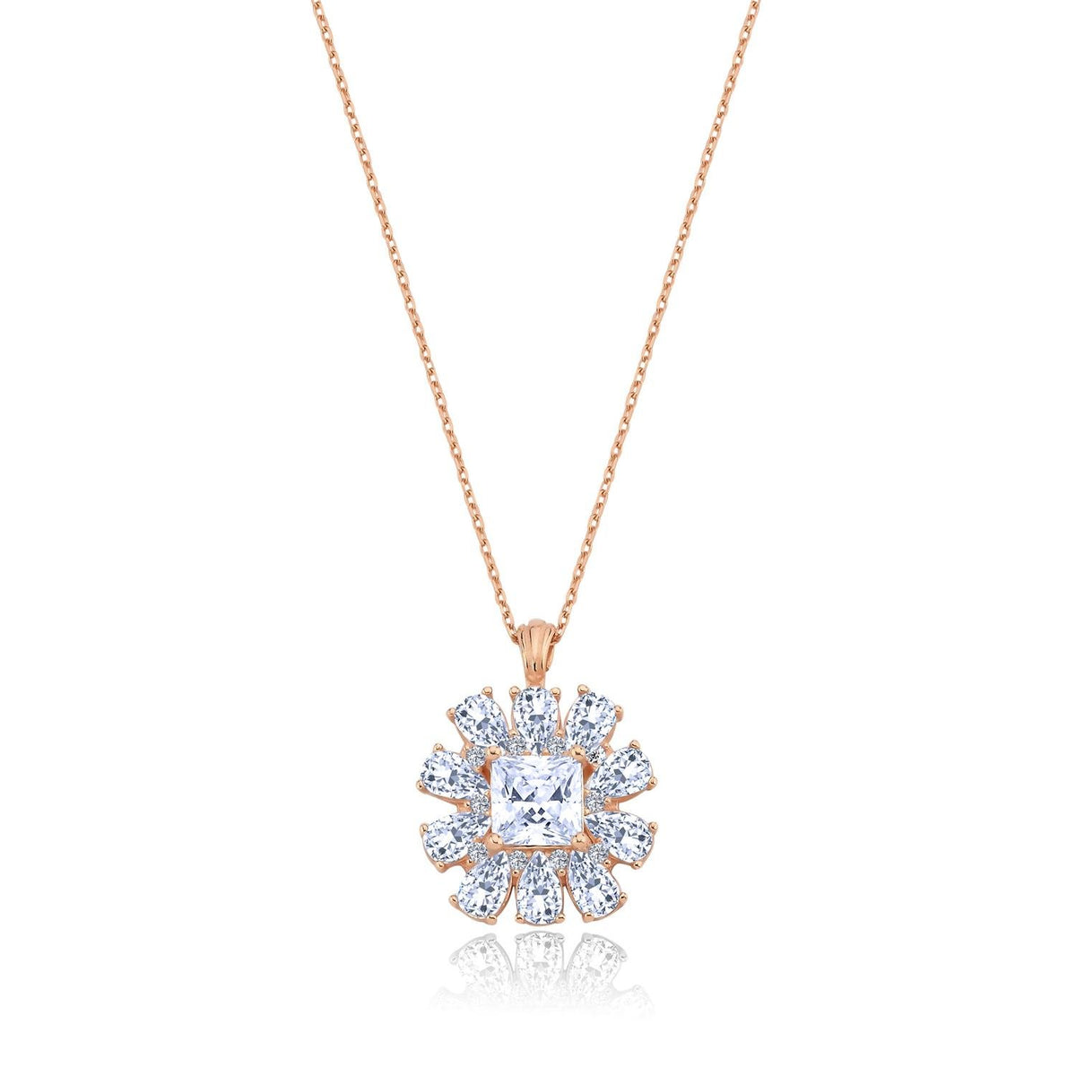 Crystal Crown Bloom CZ Rose Gold 925K Sterling Silver Necklace