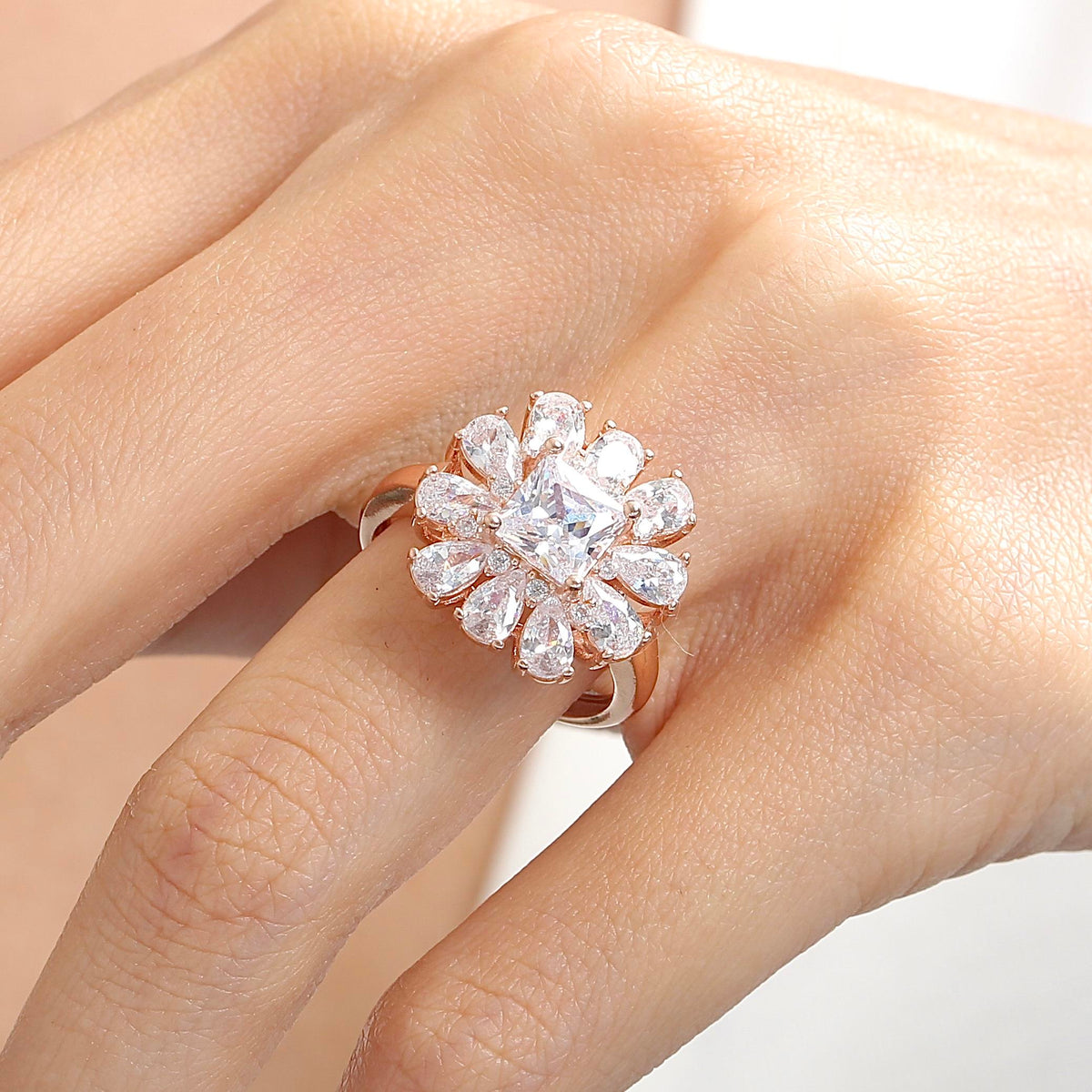Crystal Crown Bloom CZ Rose Gold 925K Sterling Silver Ring