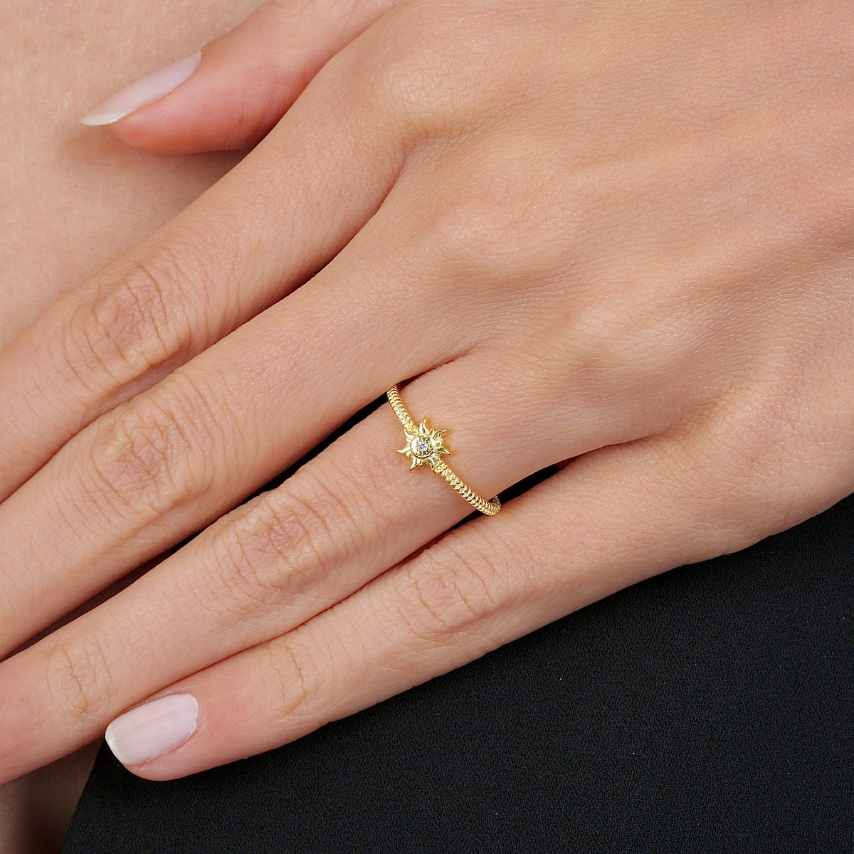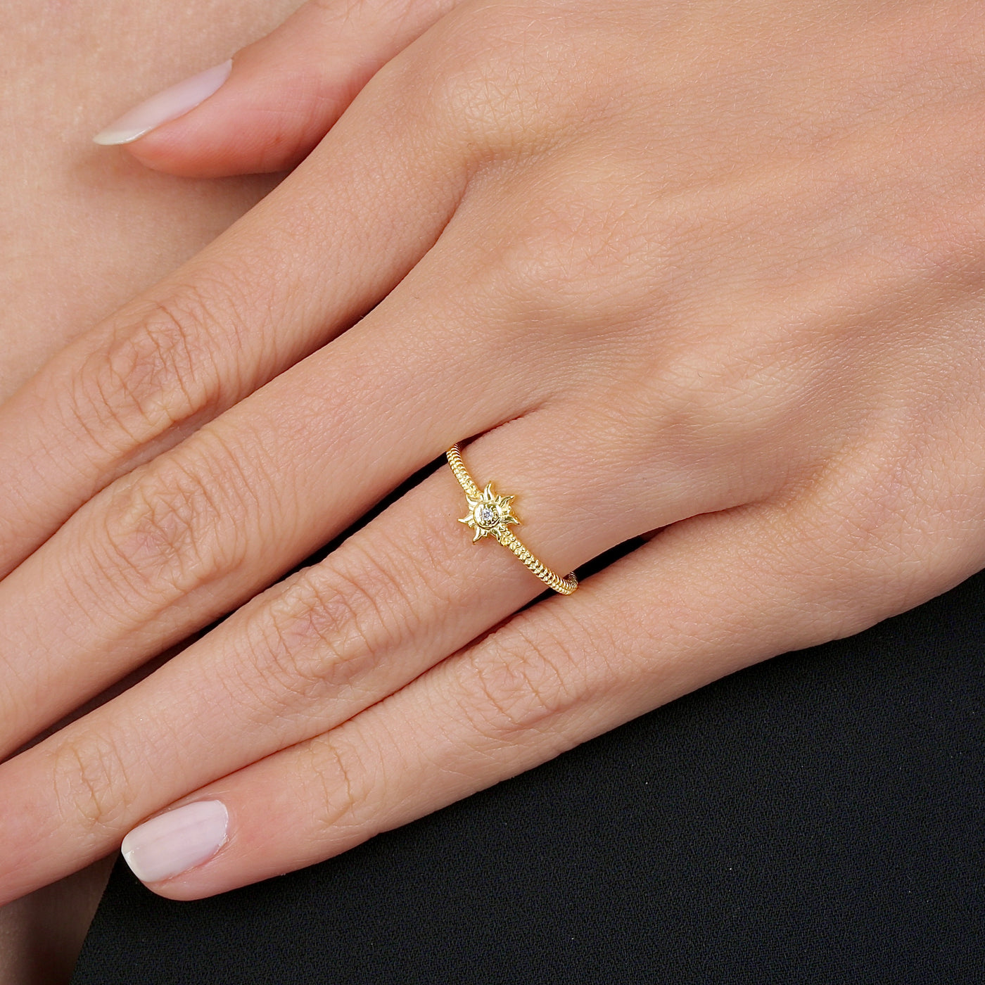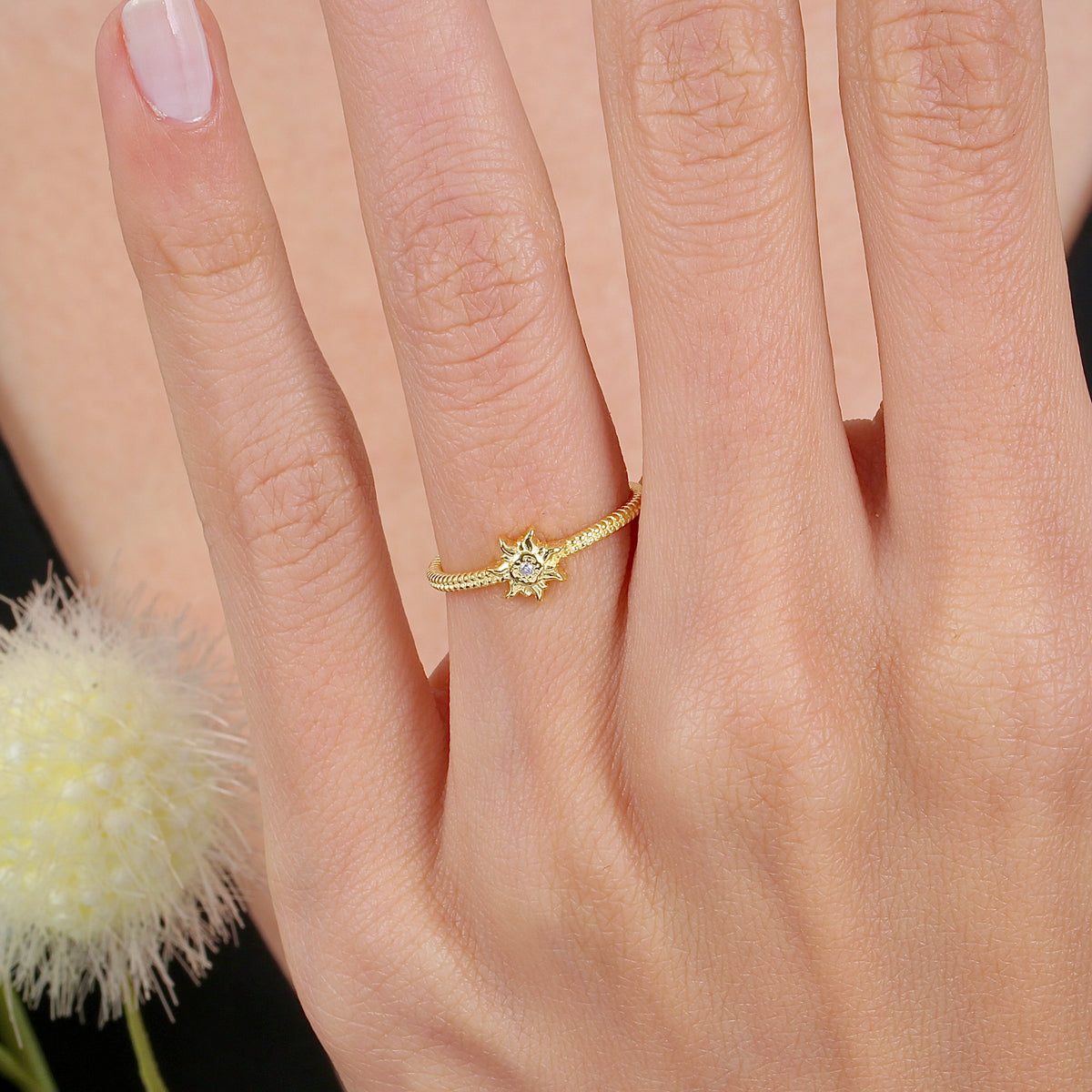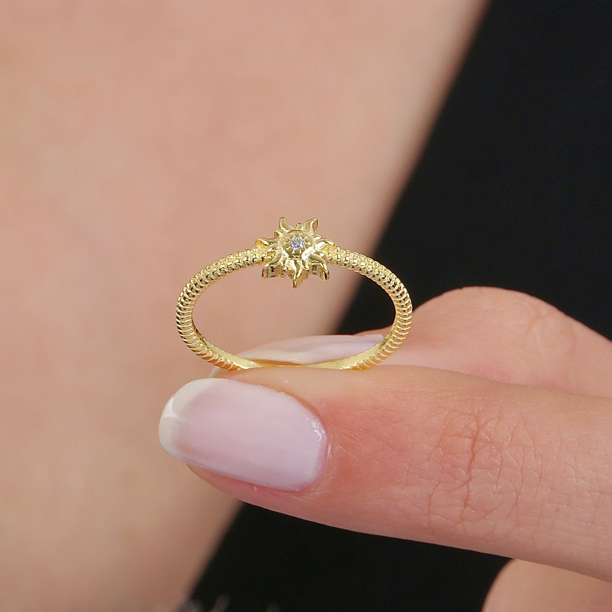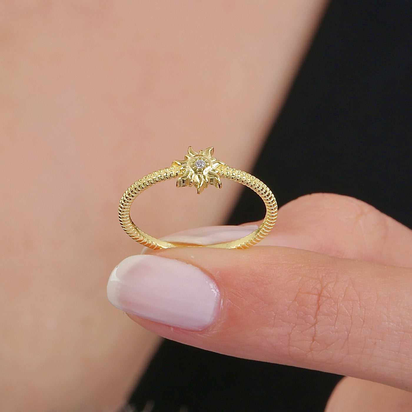 Crafted in high-quality 14K gold, this ring combines timeless elegance with modern craftsmanship, offering both a chic and durable accessory for daily wear. Whether you’re celebrating a special occasion or simply adding a touch of brightness to your ensemble, the Dainty Sun Spark Ring is a must-have for any jewelry collection.