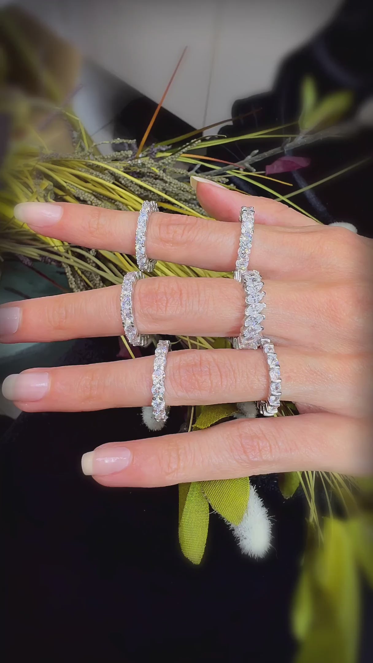 The Dazzling Grace Eternity CZ 925K Sterling Silver Ring embodies timeless elegance with its radiant design. Featuring a continuous row of brilliant-cut cubic zirconia (CZ) stones, this exquisite ring symbolizes eternal beauty and sophistication.