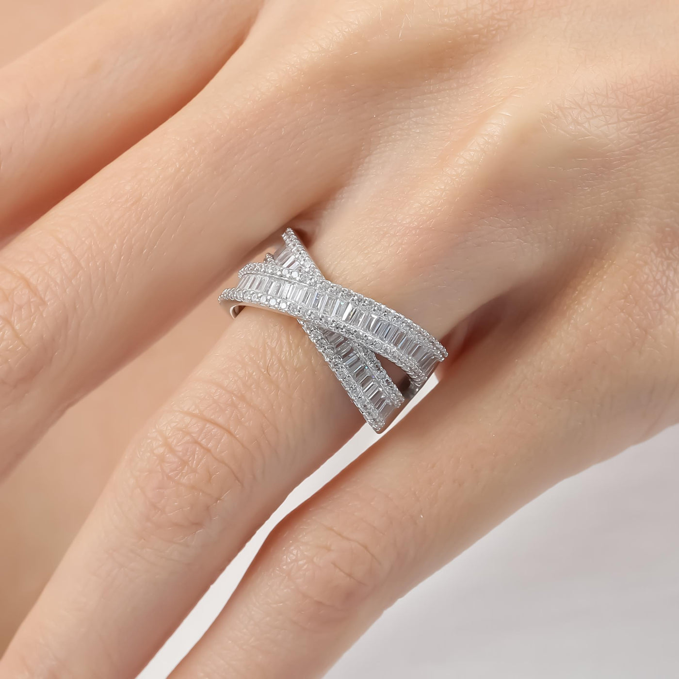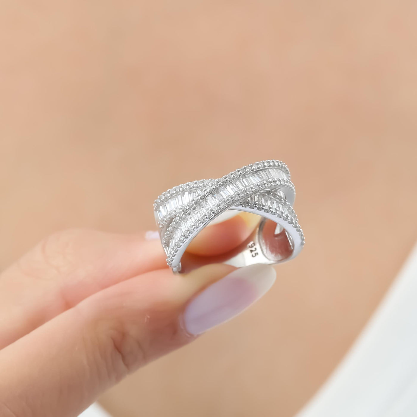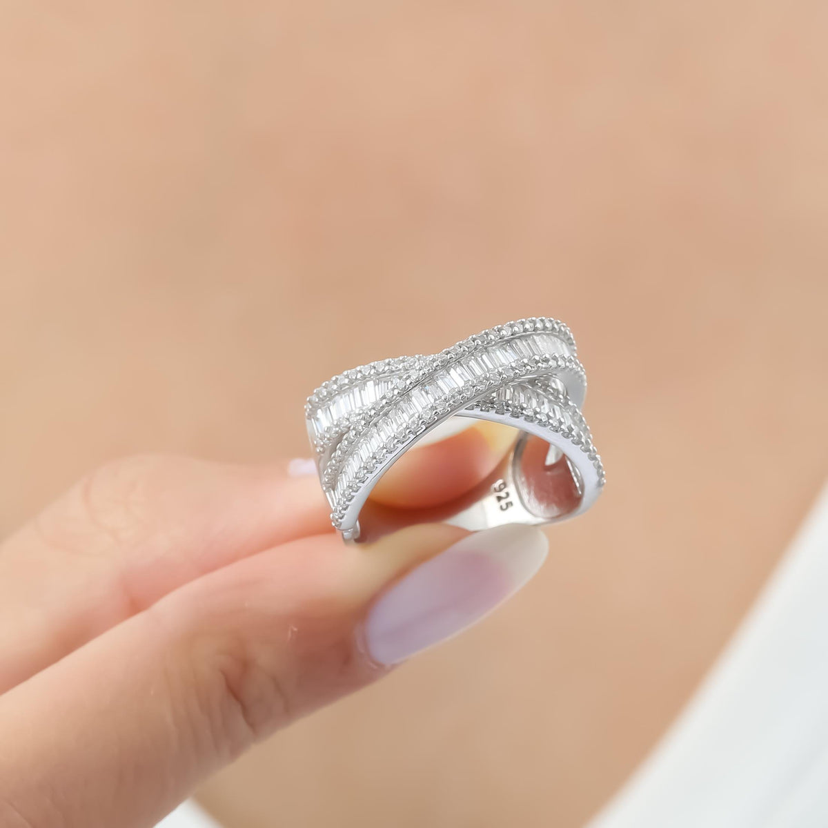Elegant Knot Baguette CZ 925K Sterling Silver Ring
