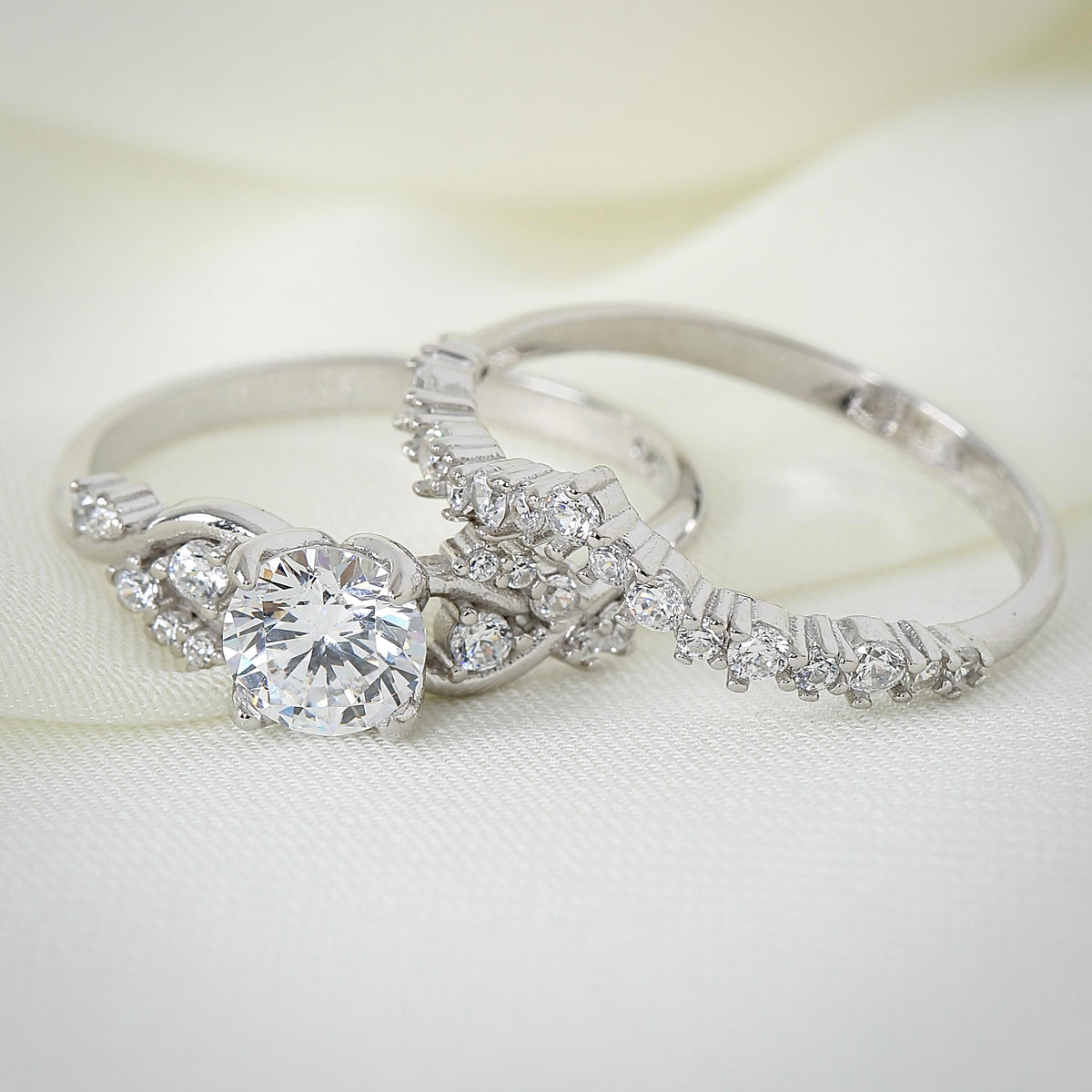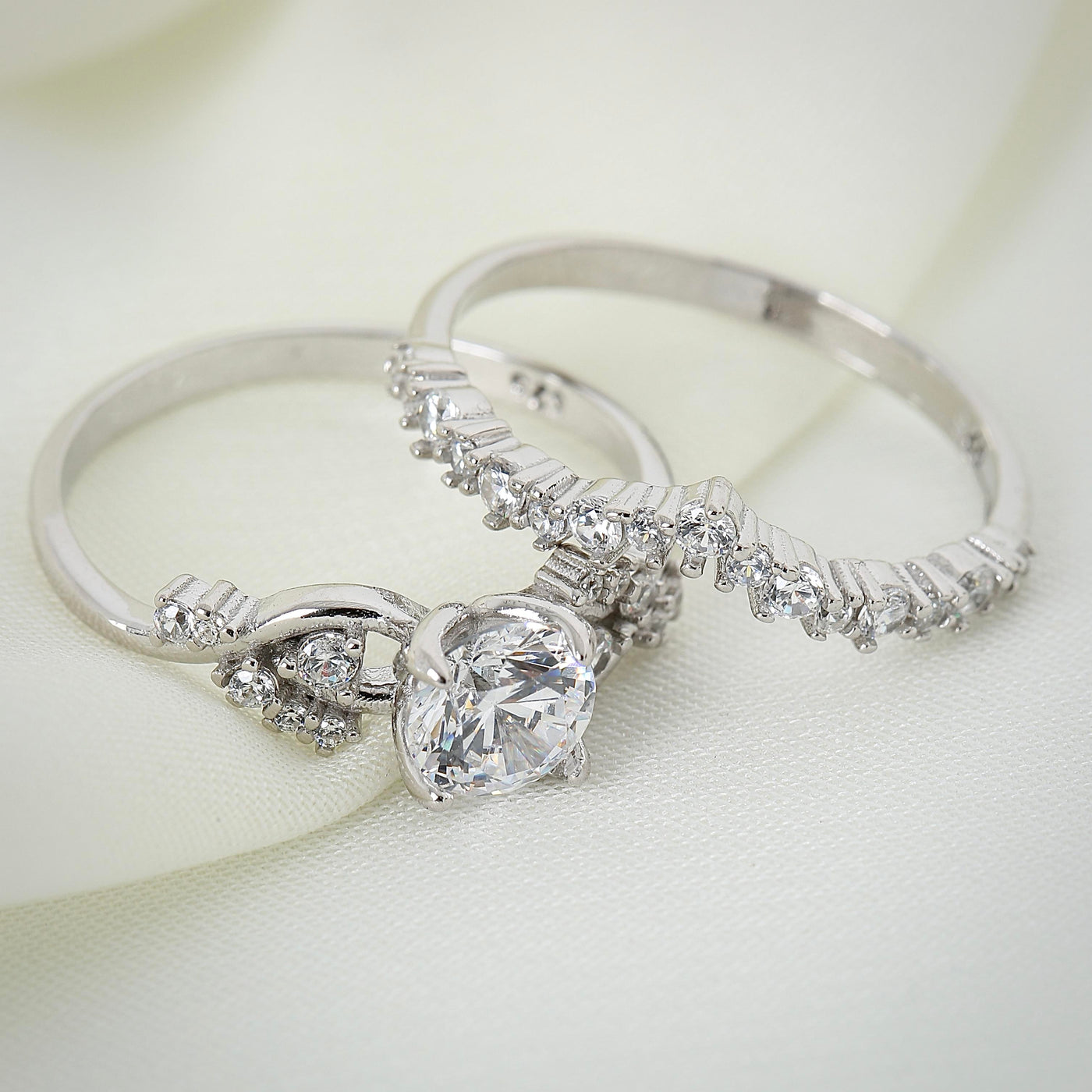 Elegant Princess Dream CZ 925K Sterling Silver Twin Rings