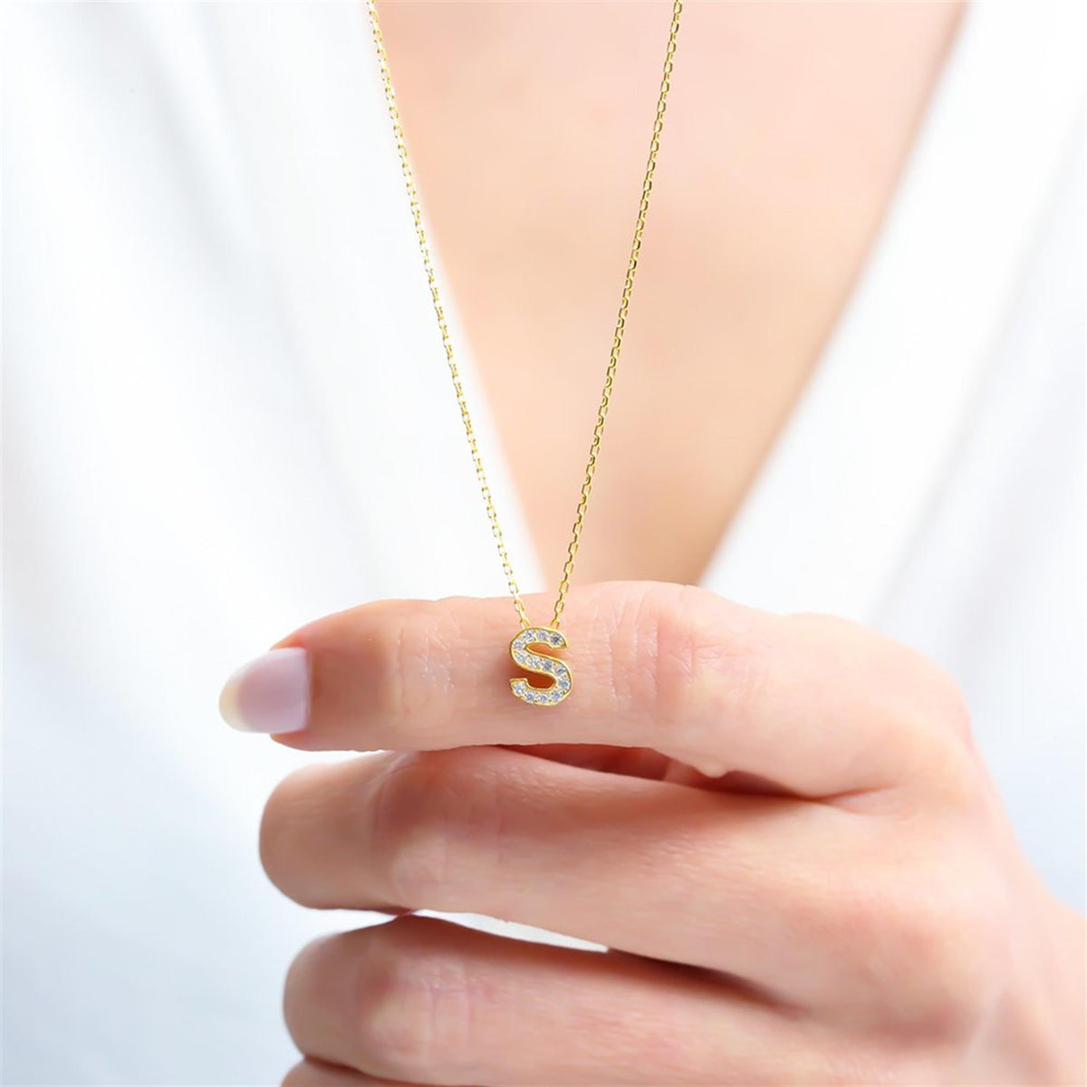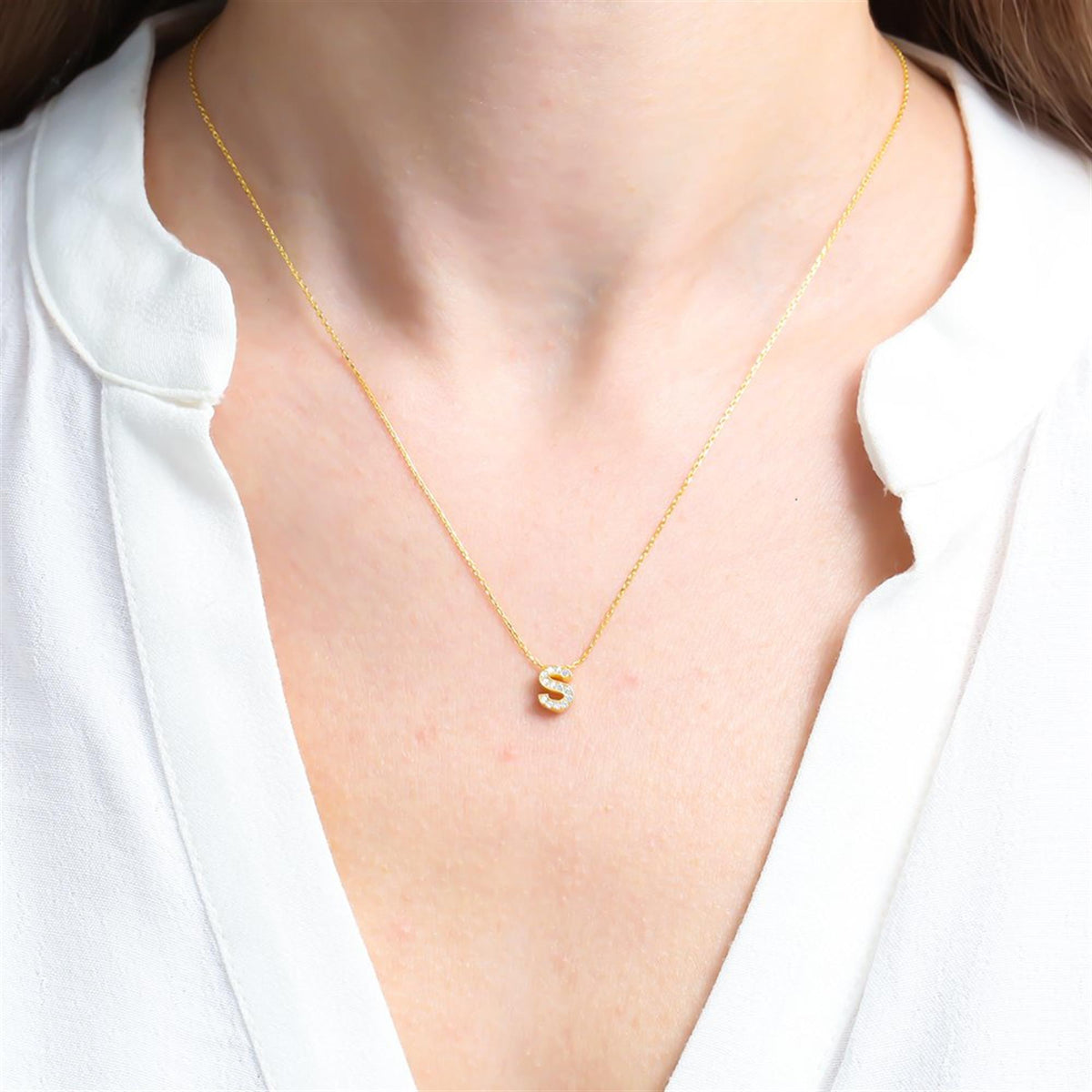 Elegant S Initial Sparkle CZ 14K Gold Necklace