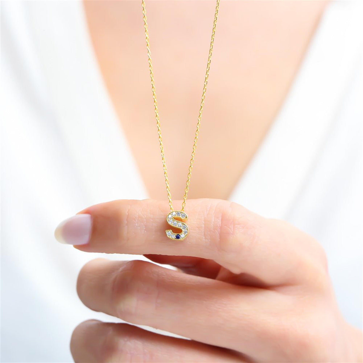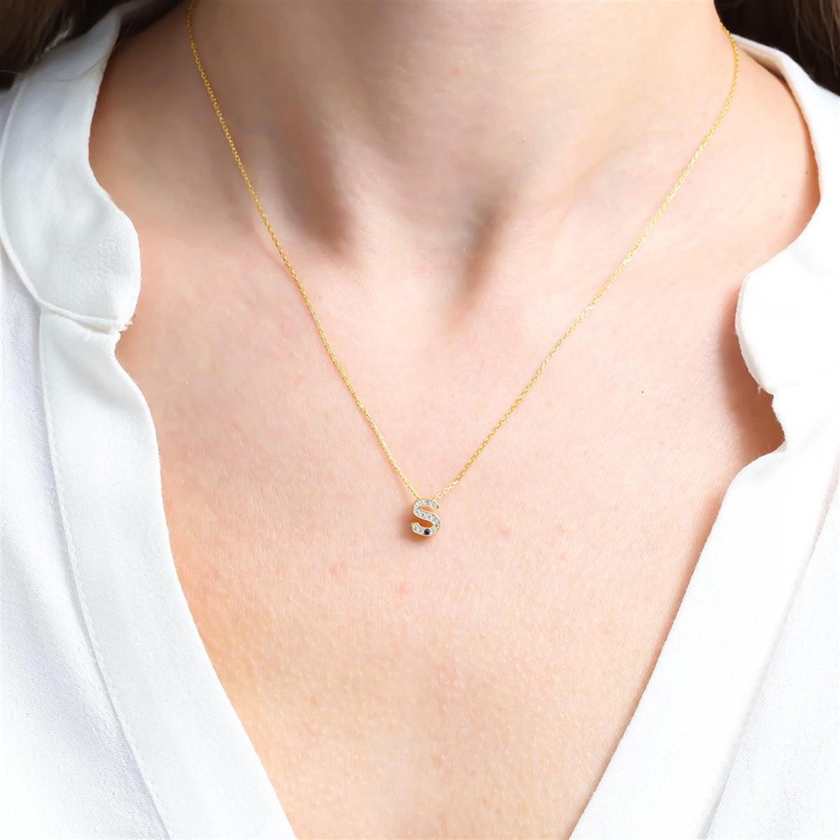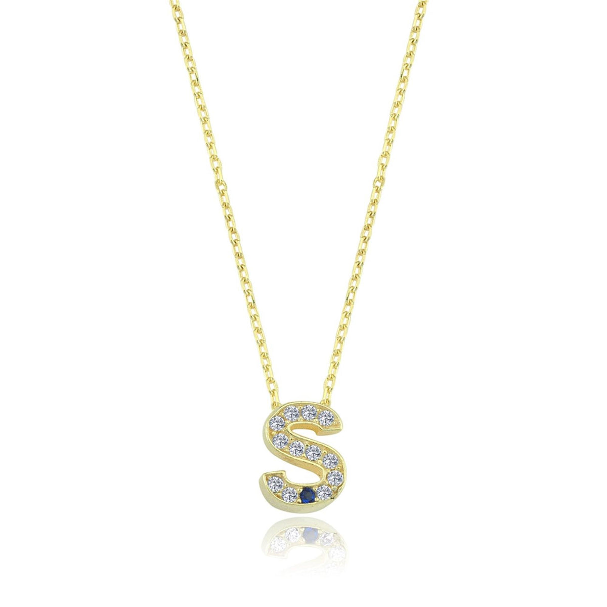 Elegant Ş Initial Sparkle CZ 14K Gold Necklace