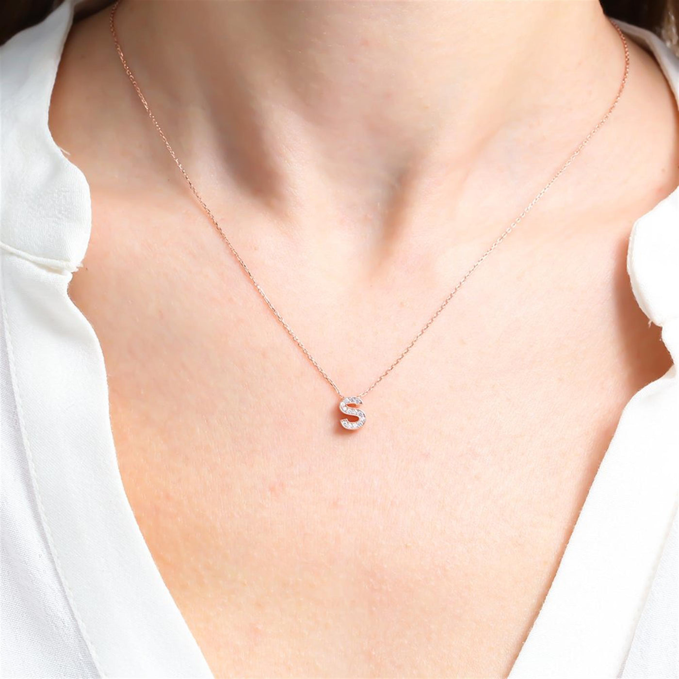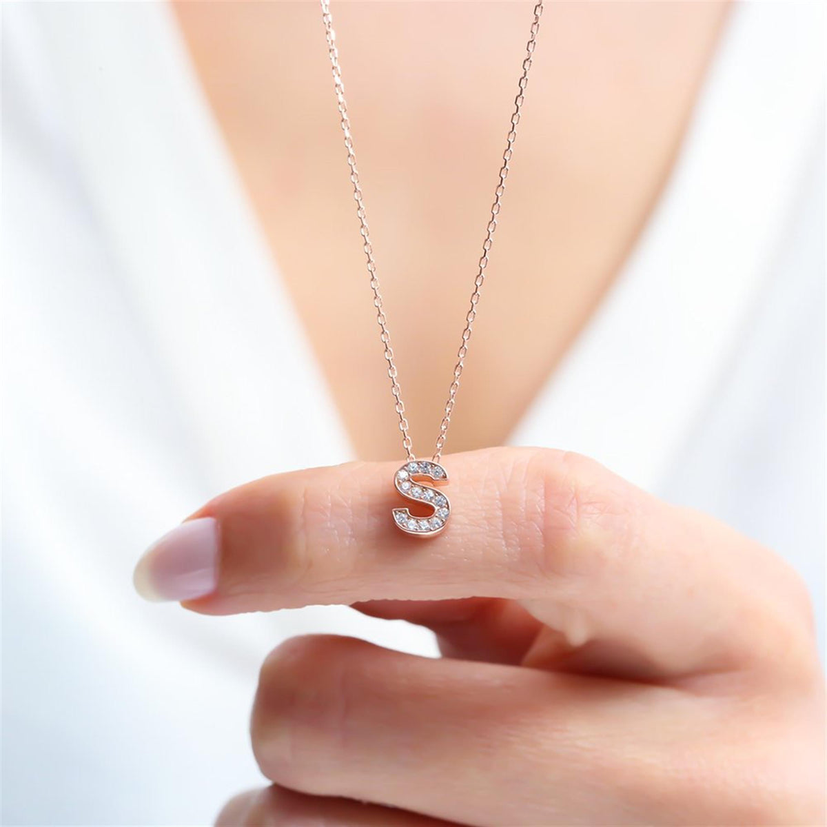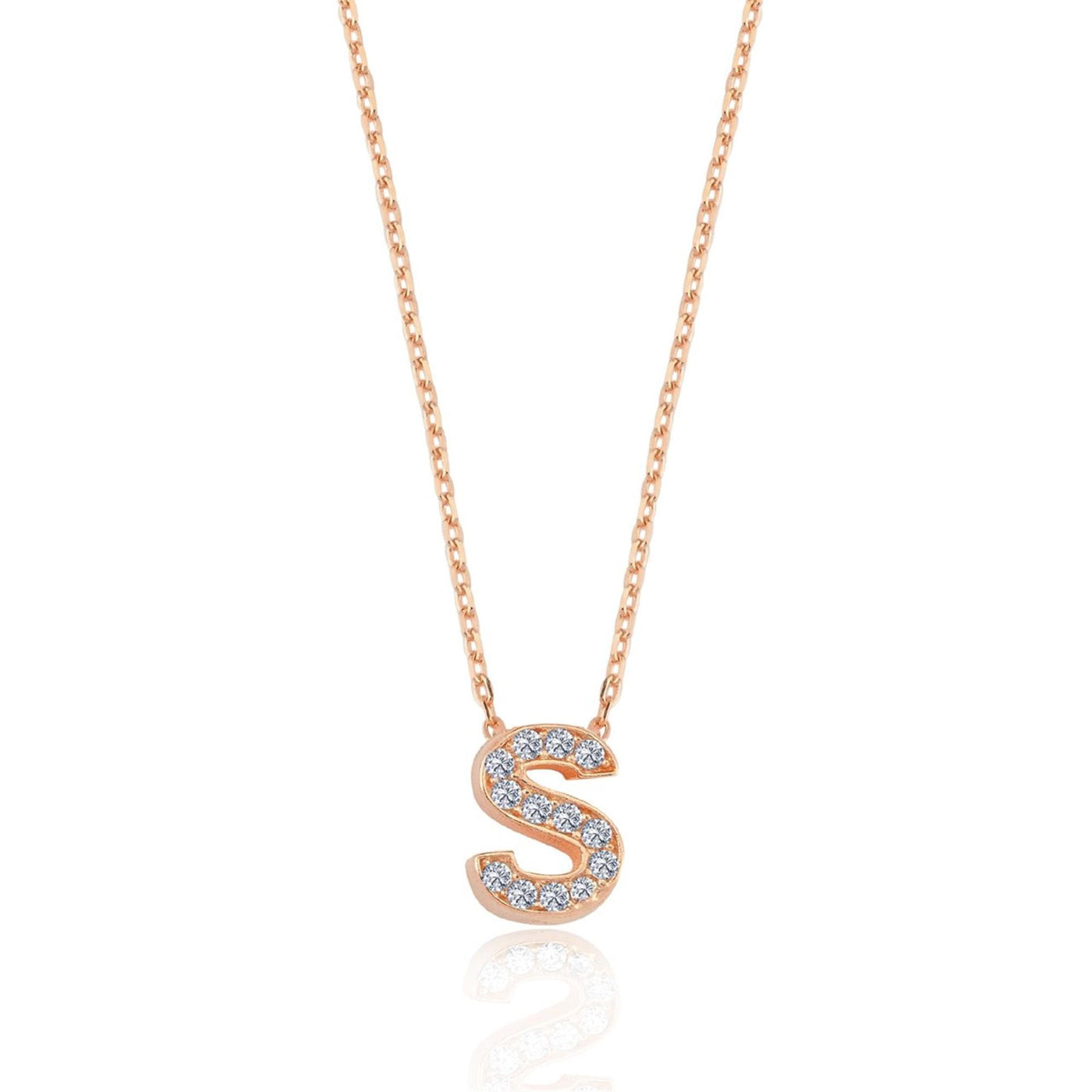 Elegant S Initial Sparkle CZ Rose Gold 925K Sterling Silver Necklace
