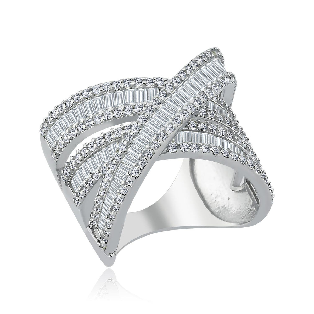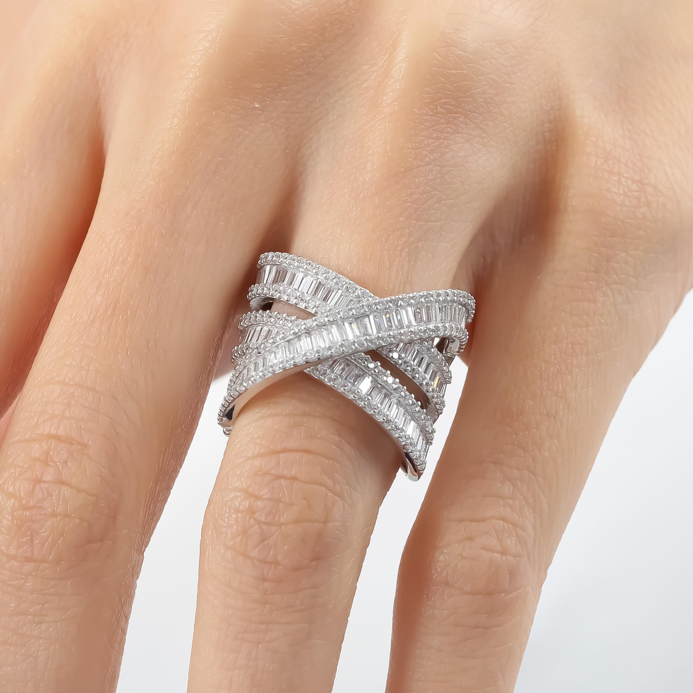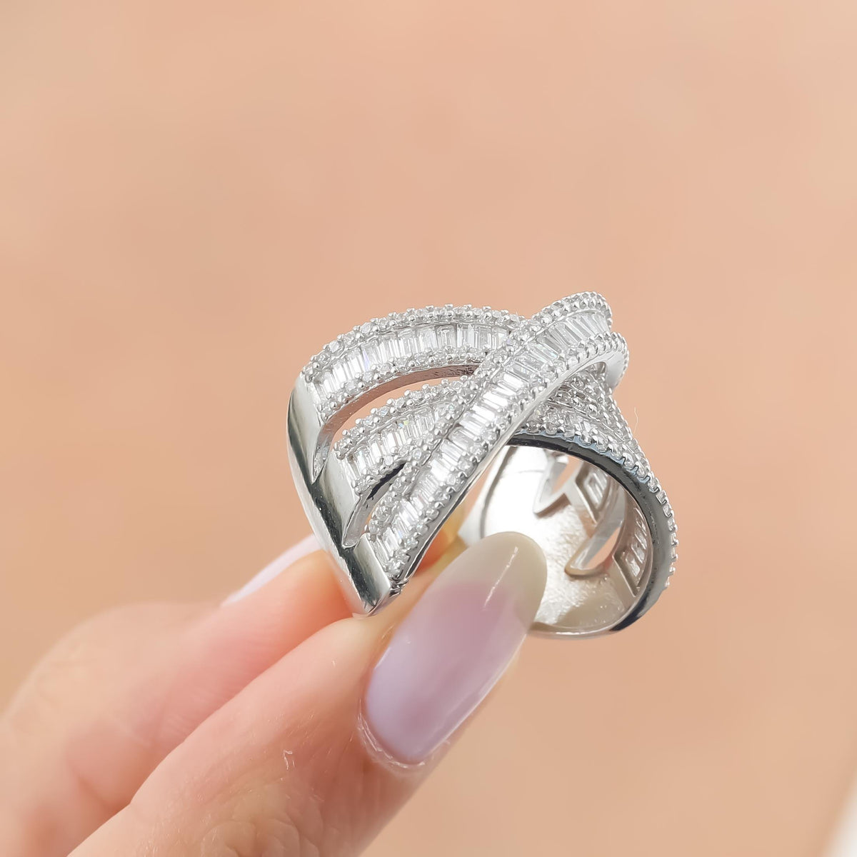 Elegant Spiral Baguette CZ 925K Sterling Silver Ring