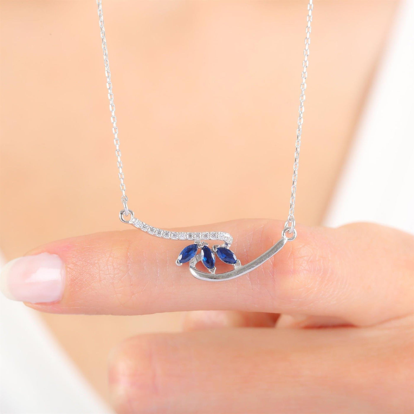 The Elegant Wave Sapphire Color CZ 925K Sterling Silver Necklace captures the graceful rhythm of flowing water in a design that radiates refined beauty. Crafted from 925K sterling silver, it features an elegant wave motif adorned with high-quality cubic zirconia stones and a striking sapphire color accent for a touch of bold blue brilliance.