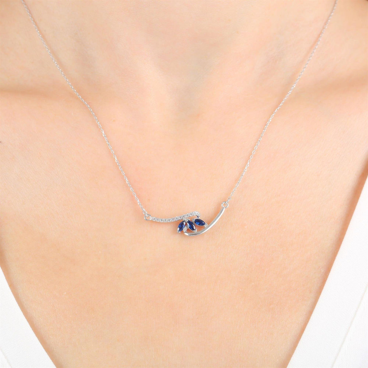 Presented in a luxurious Etossimo Jewelry gift box and bag, the Elegant Wave Sapphire Color CZ 925K Sterling Silver Necklace is a radiant addition to any refined jewelry collection.