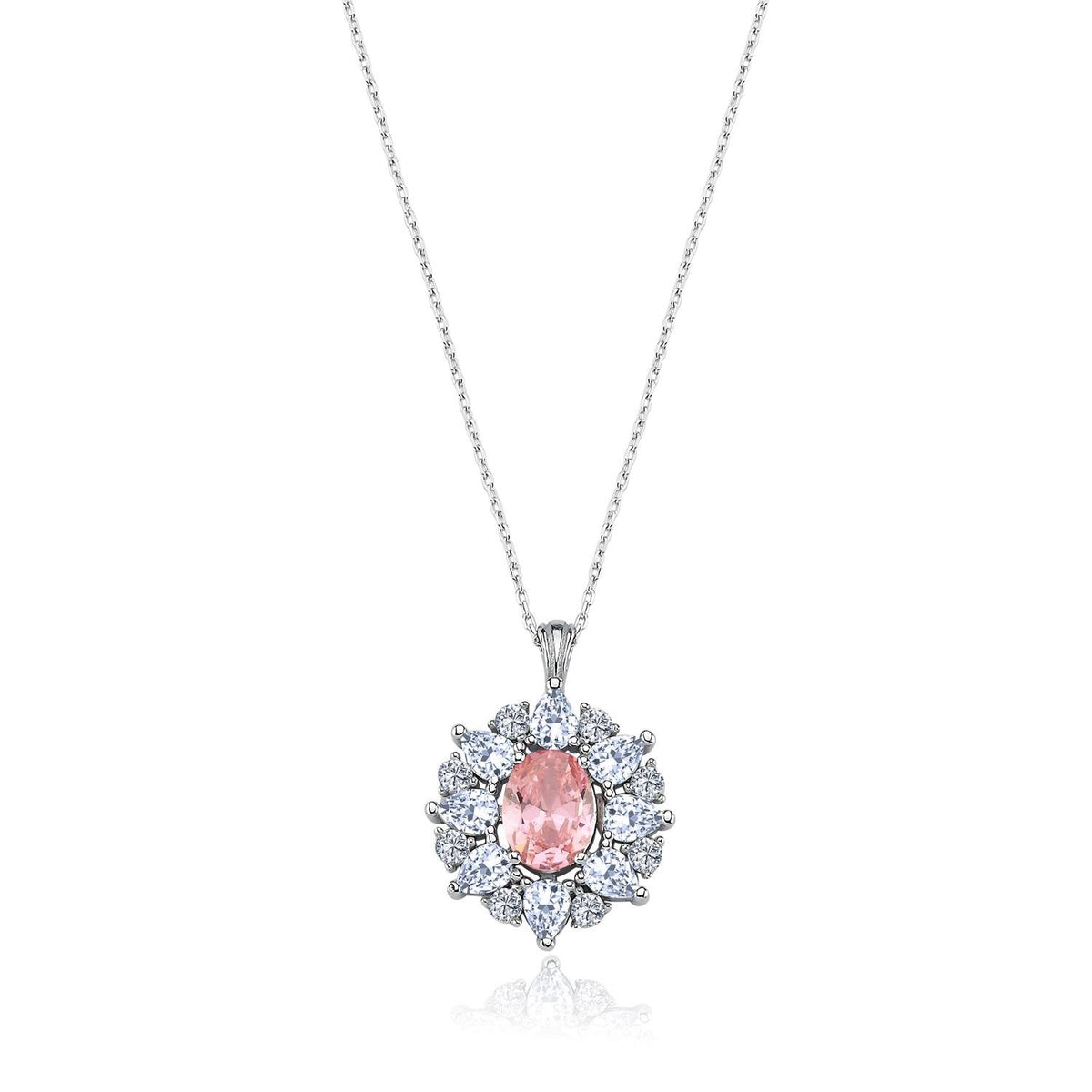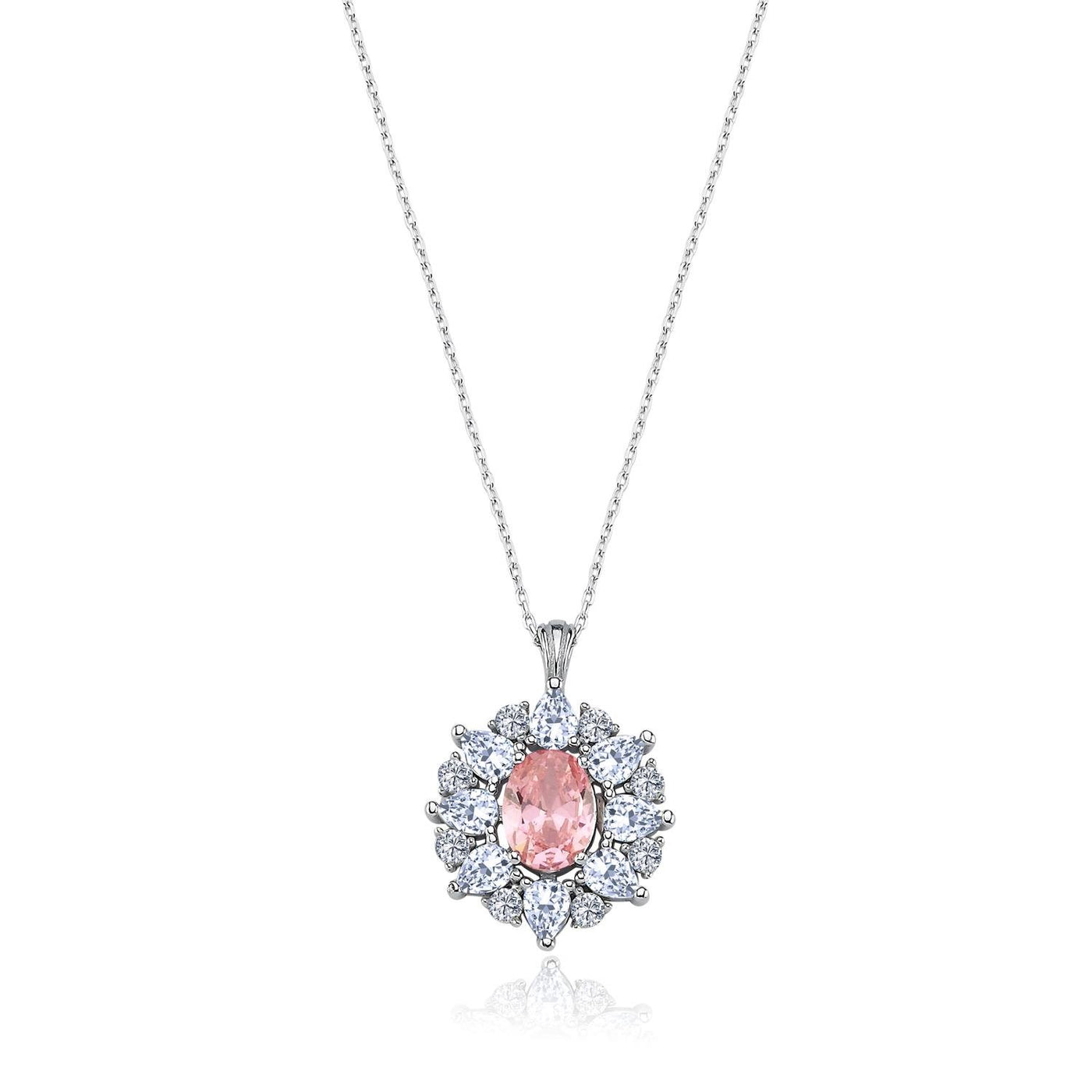 Empress Glow Pink Stone CZ 925K Sterling Silver Necklace