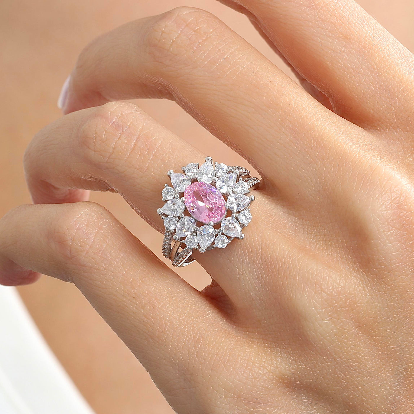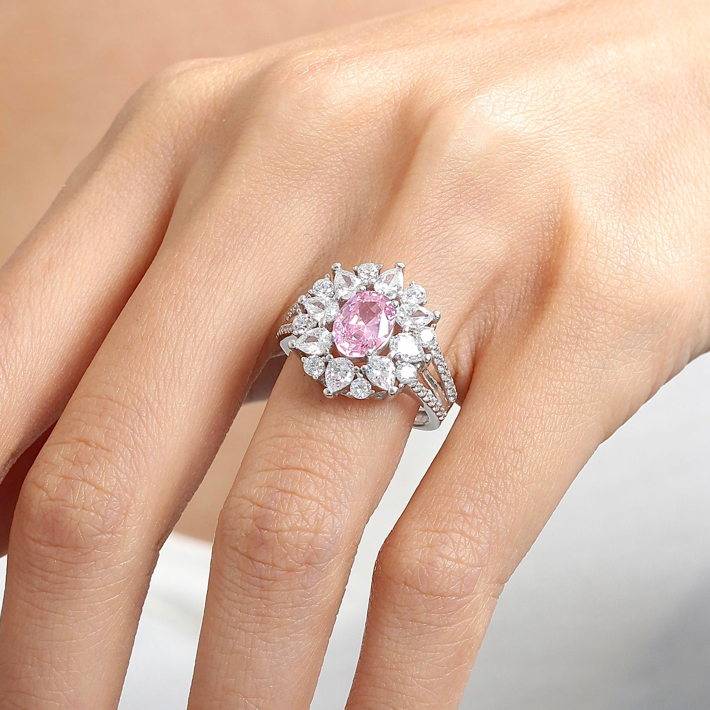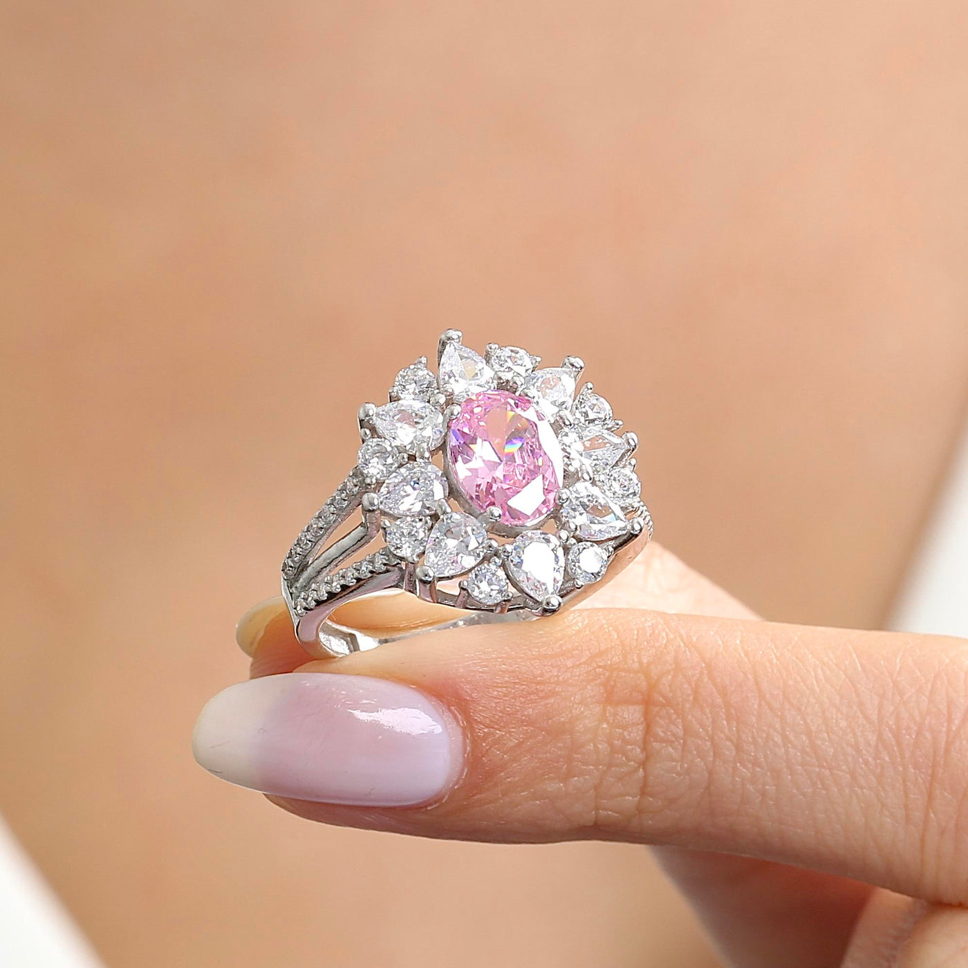 Empress Glow Pink Stone CZ 925K Sterling Silver Ring