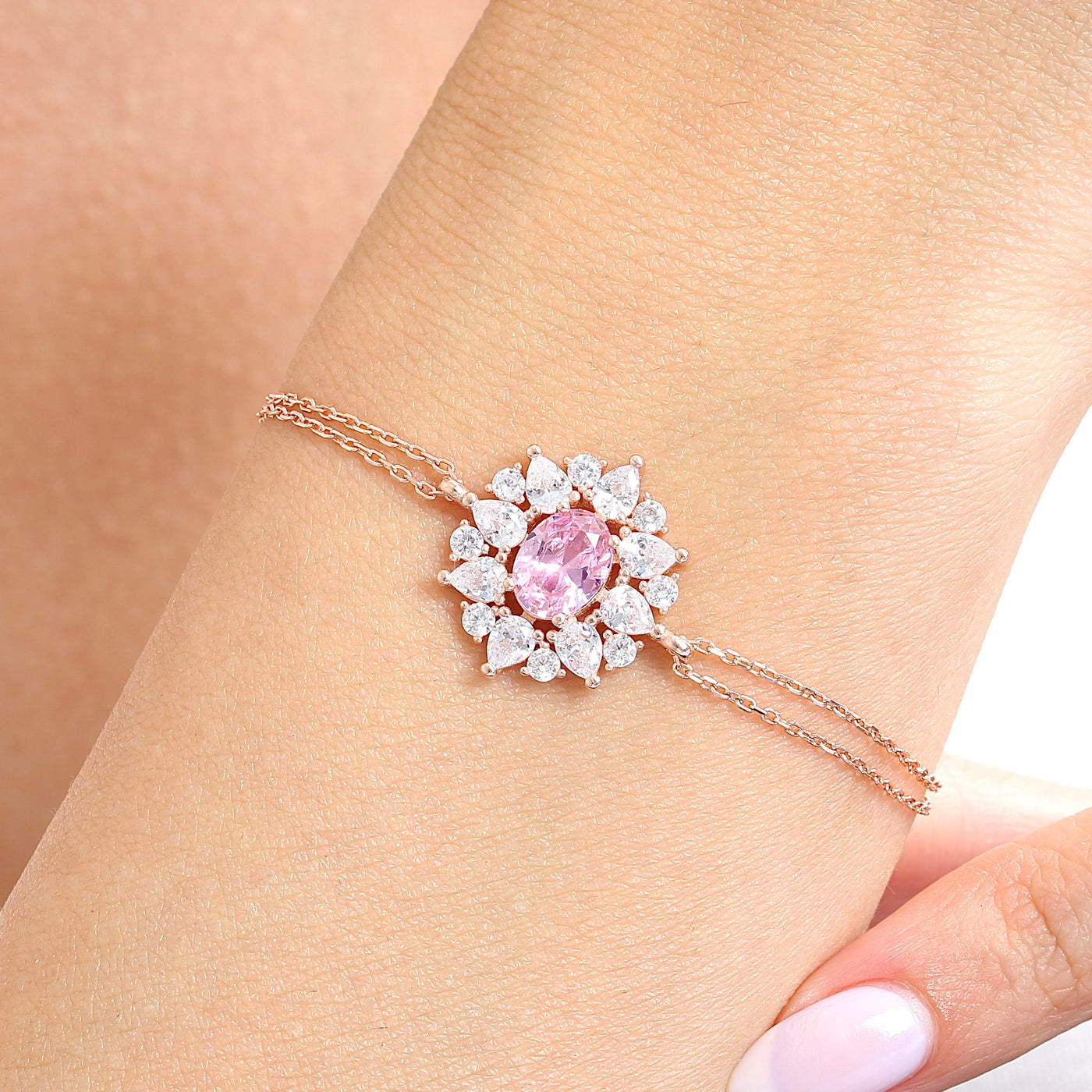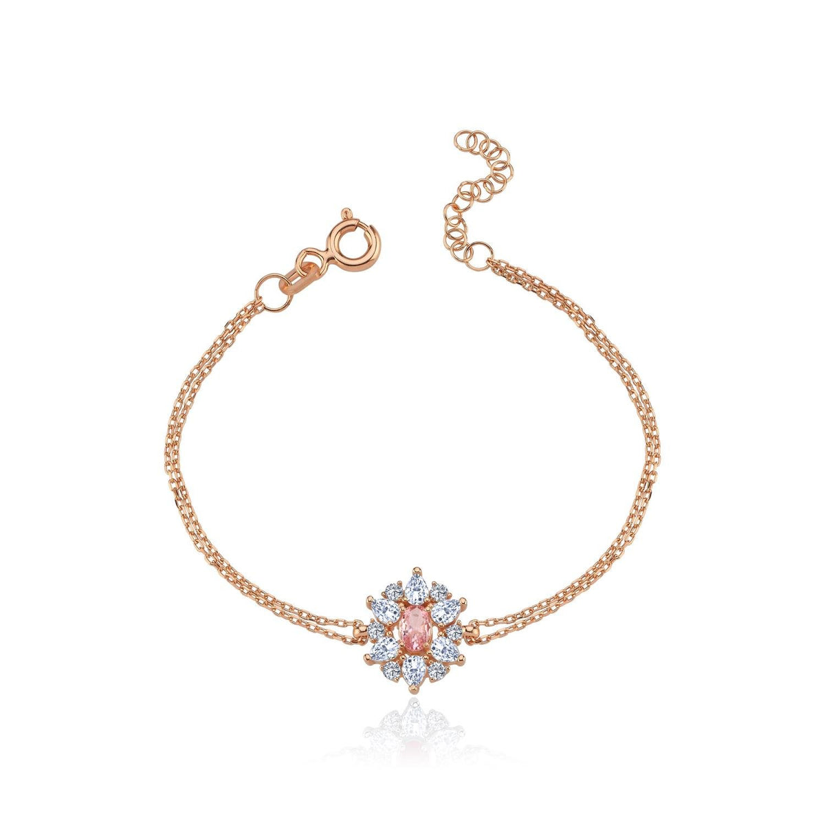Empress Glow Pink Stone CZ Rose Gold 925K Sterling Silver Bracelet