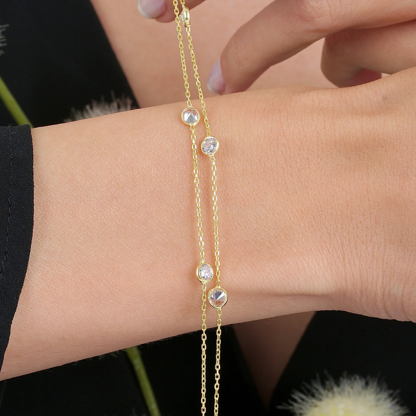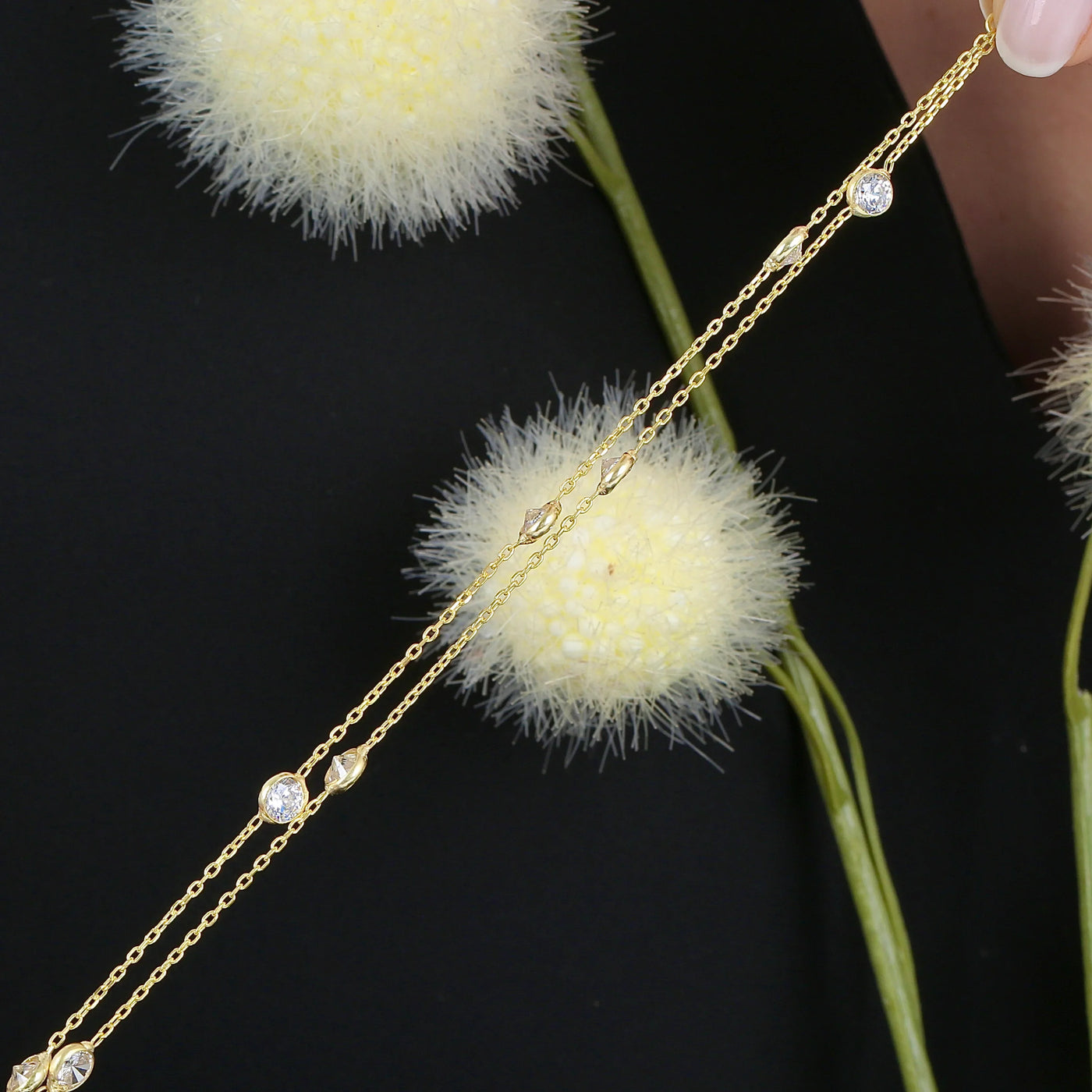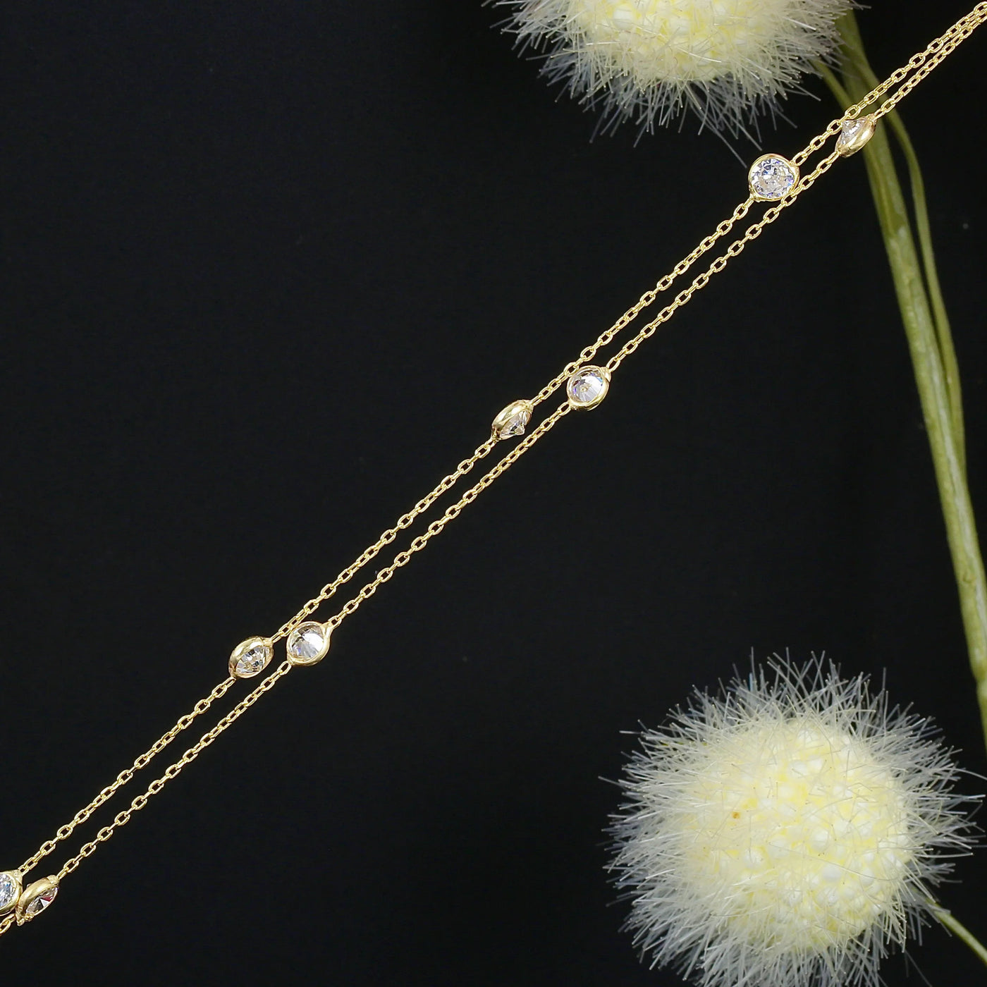Ethereal Glow Double Chain CZ 14K Gold Bracelet