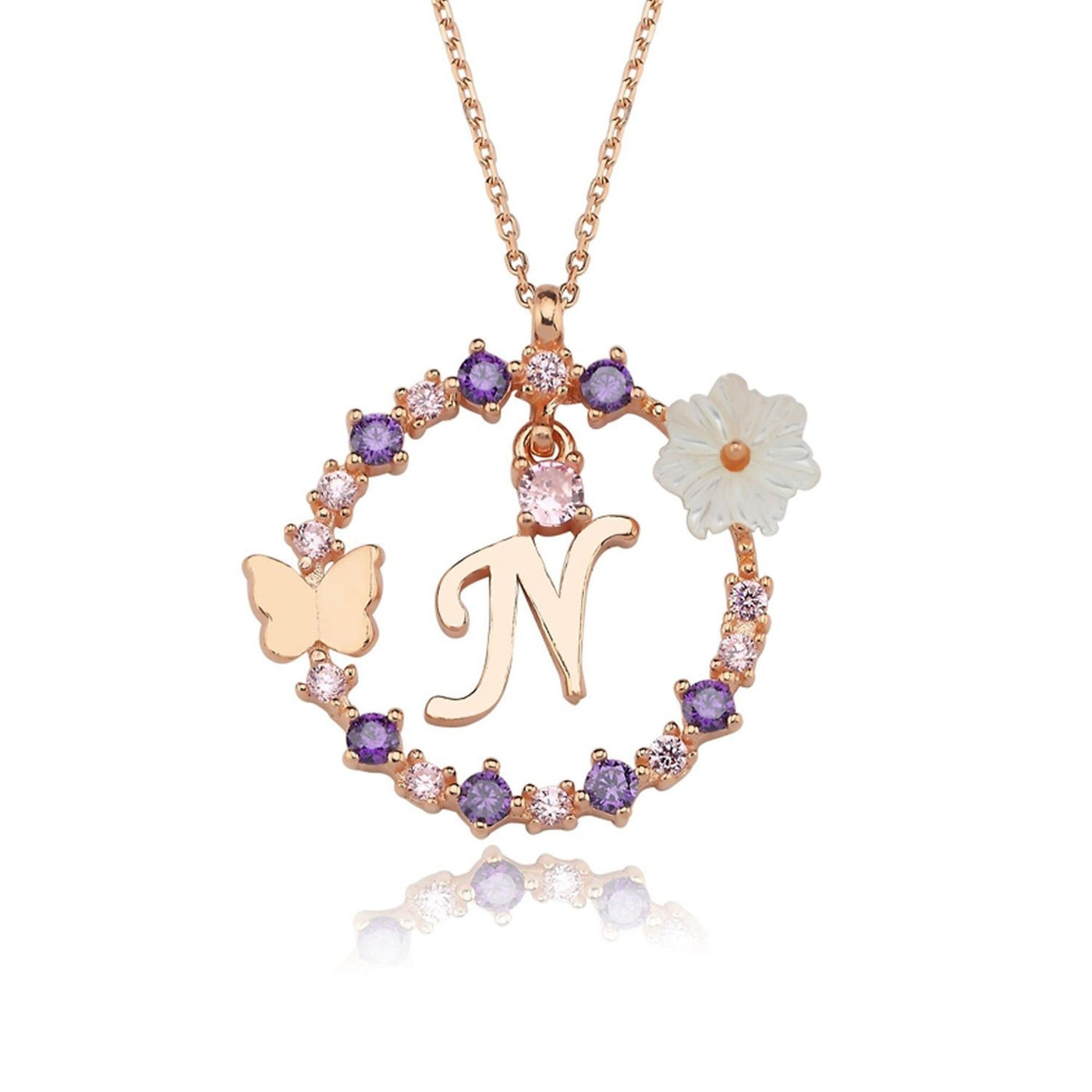 Step into a world of blooming elegance with the Floral Dream N Initial CZ Rose Gold 925K Sterling Silver Necklace. Featuring the letter N delicately framed by floral-inspired curves and adorned with shimmering cubic zirconia, this necklace evokes the soft beauty of nature blended with timeless sophistication. Whether it represents your own name or someone close to your heart, it is a graceful expression of identity and charm.