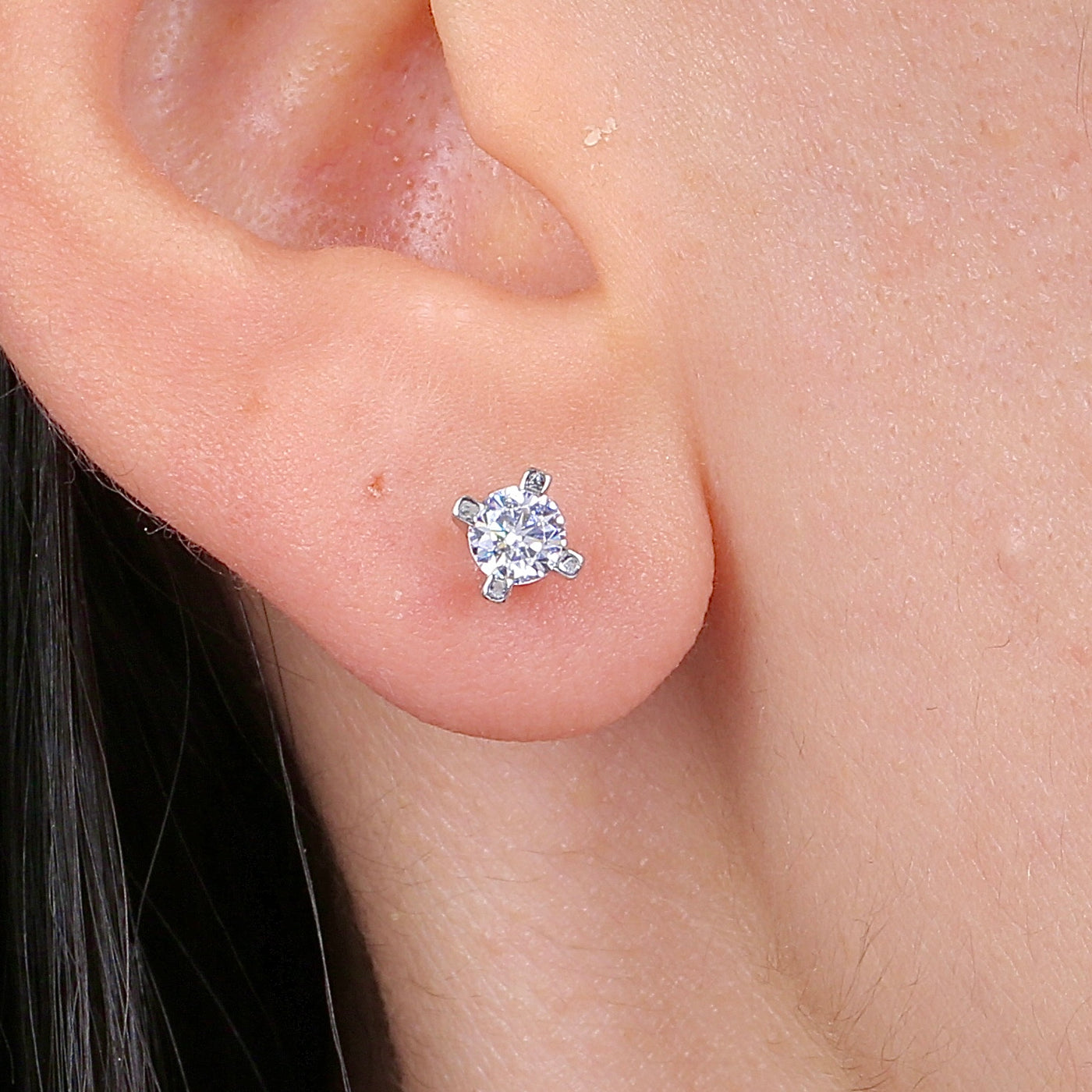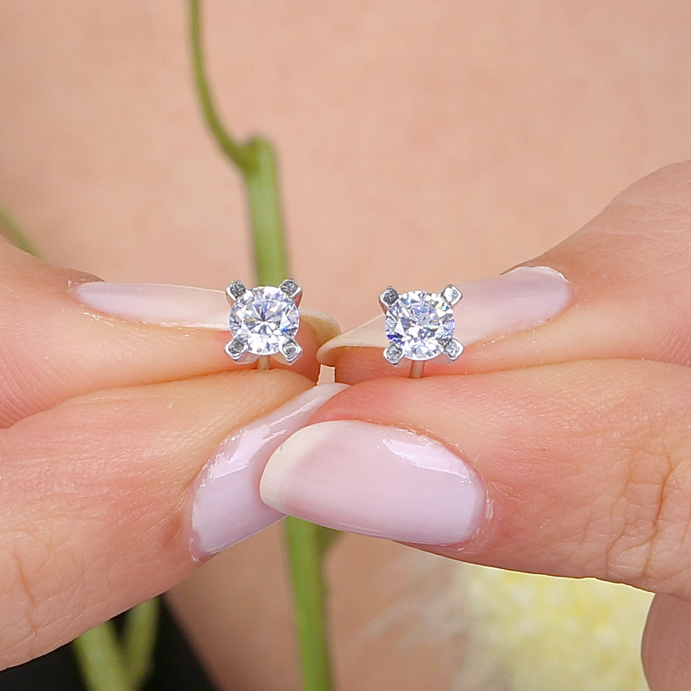 Frosted Charm Solitaire CZ 925K Sterling Silver Stud Earrings