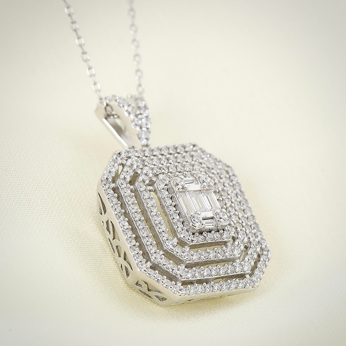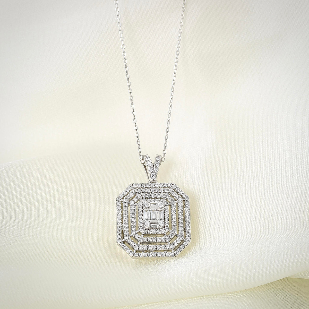 Embrace the ultimate in sophistication with the Glamorous Mega Baguette Dream CZ 925K Sterling Silver Necklace. Designed to captivate, this stunning necklace features luxurious cubic zirconia baguette stones that reflect the light with each turn. Expertly crafted in 925K sterling silver, this necklace exudes timeless elegance, while the rhodium plating ensures a polished and radiant finish.