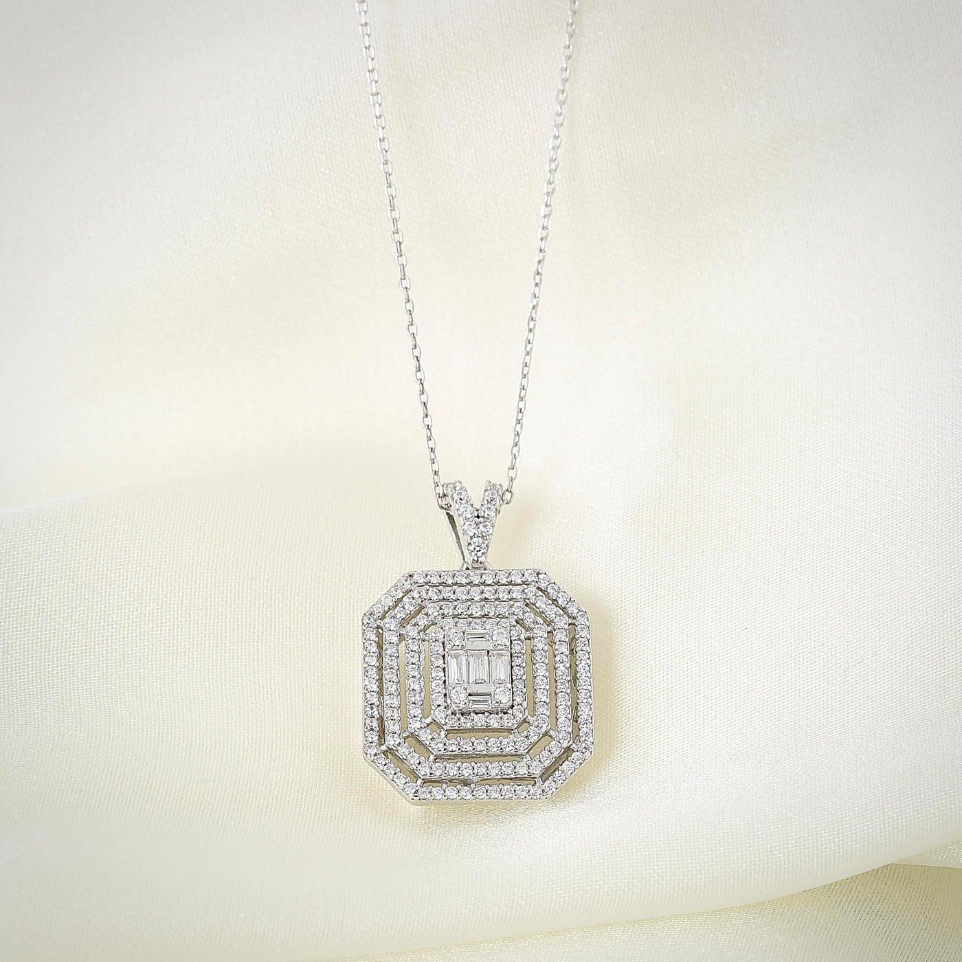 The geometric design, highlighted by the luxurious baguette stones arranged in multiple layers, creates a statement of opulence. Perfect for evening wear or special occasions, the Glamorous Mega Baguette Necklace is a true masterpiece that will elevate any ensemble.
