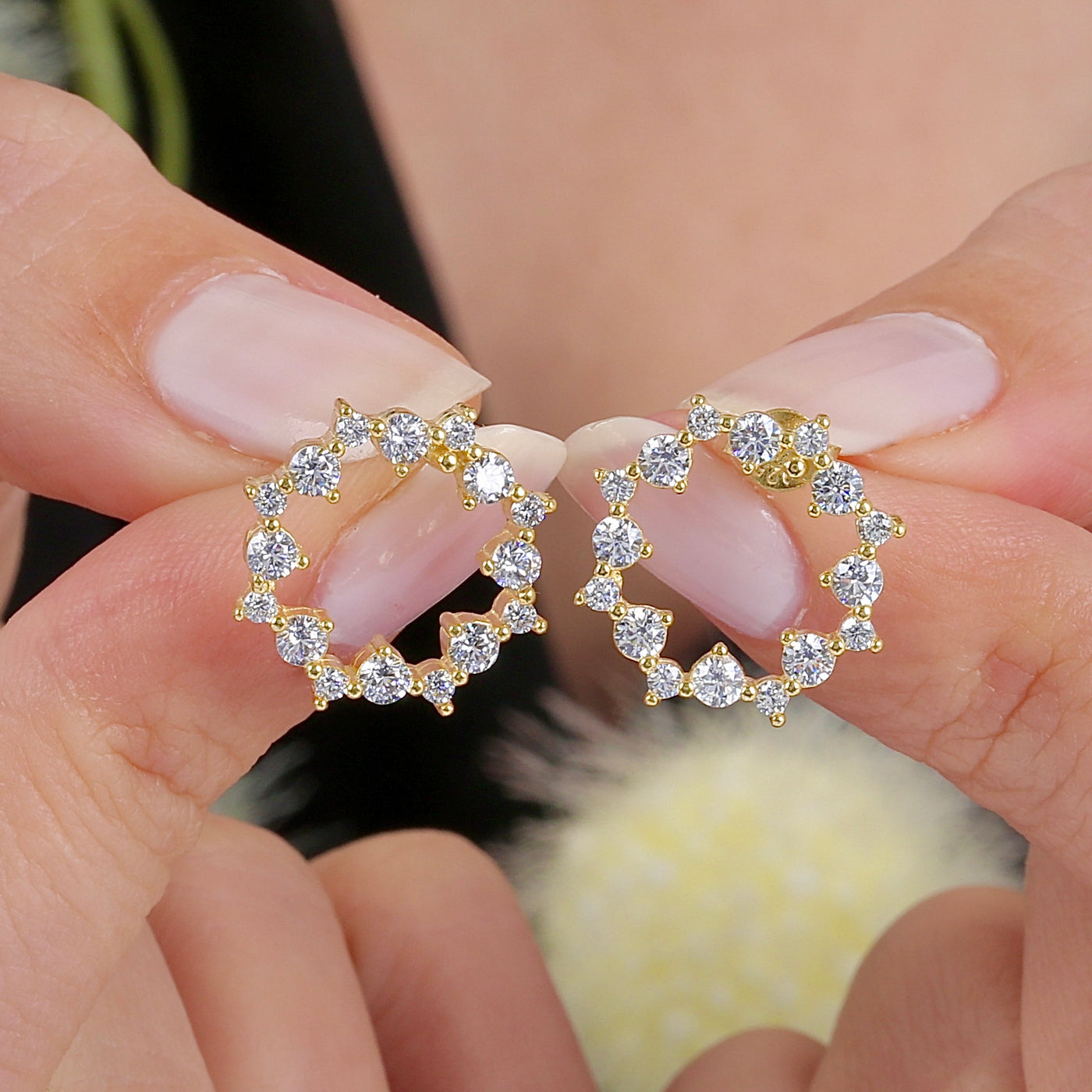 Step into a world of refined elegance with the Gleaming Embellished Wreath CZ 14K Gold Earrings, a radiant fusion of sophistication and brilliance. Inspired by the timeless beauty of nature, these earrings feature a delicate wreath design, adorned with meticulously cut cubic zirconia stones that shimmer with every movement.