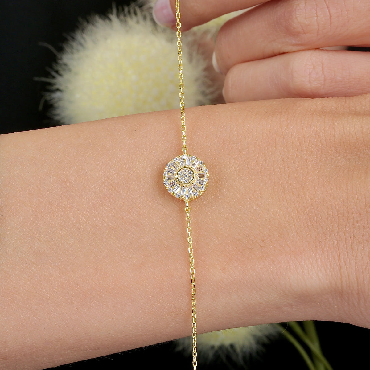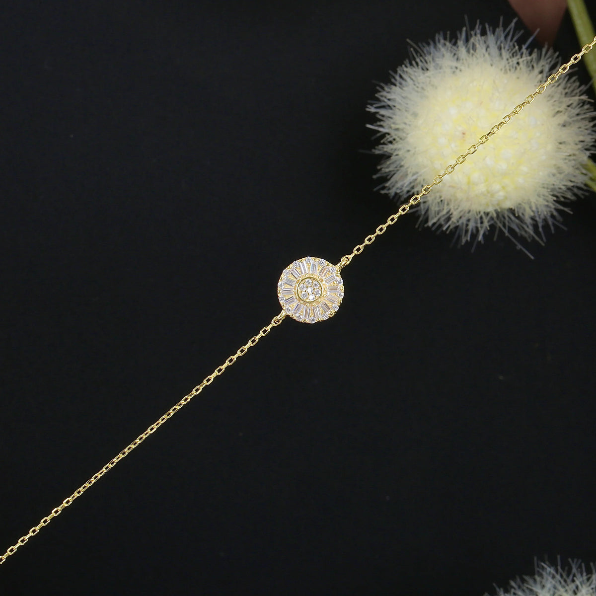 Golden Sunbeam Halo CZ 14K Gold Bracelet