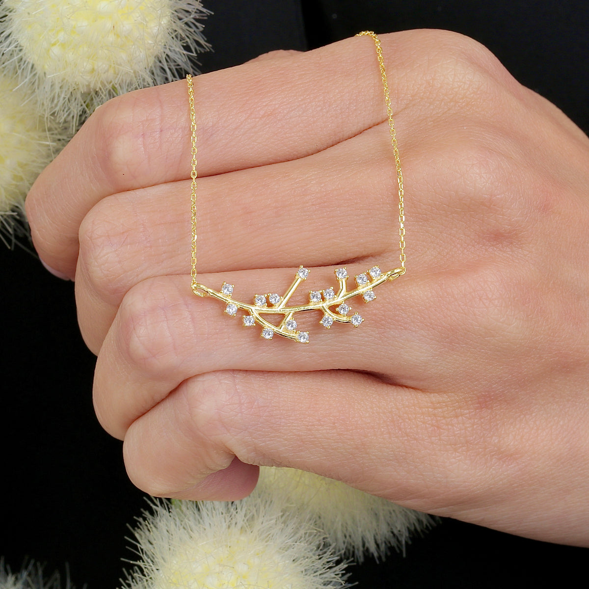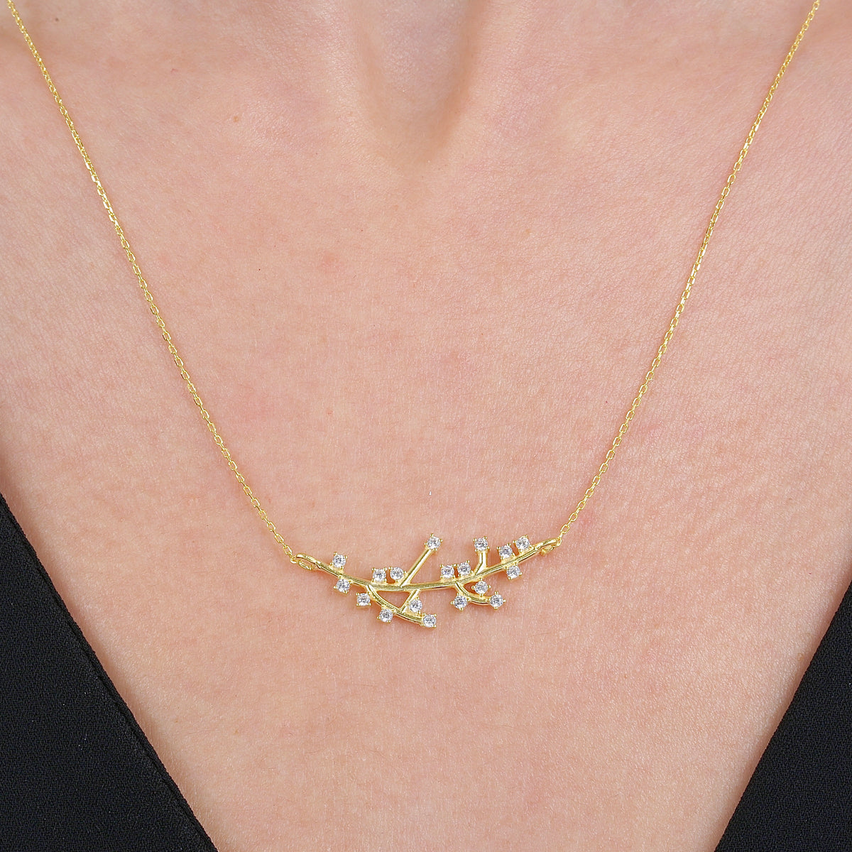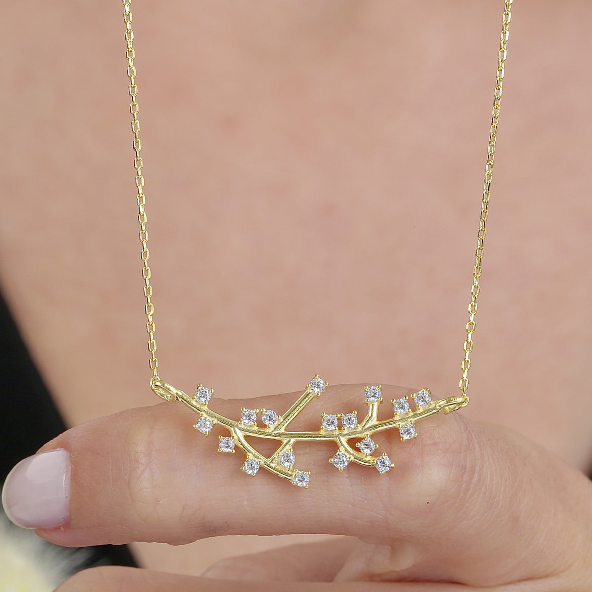 The twig motif represents growth, renewal, and connection to nature, while the celestial-inspired cubic zirconia adds a touch of magic and brilliance. This necklace is perfect for those who appreciate the natural world, yet seek the dazzling allure of fine jewelry.