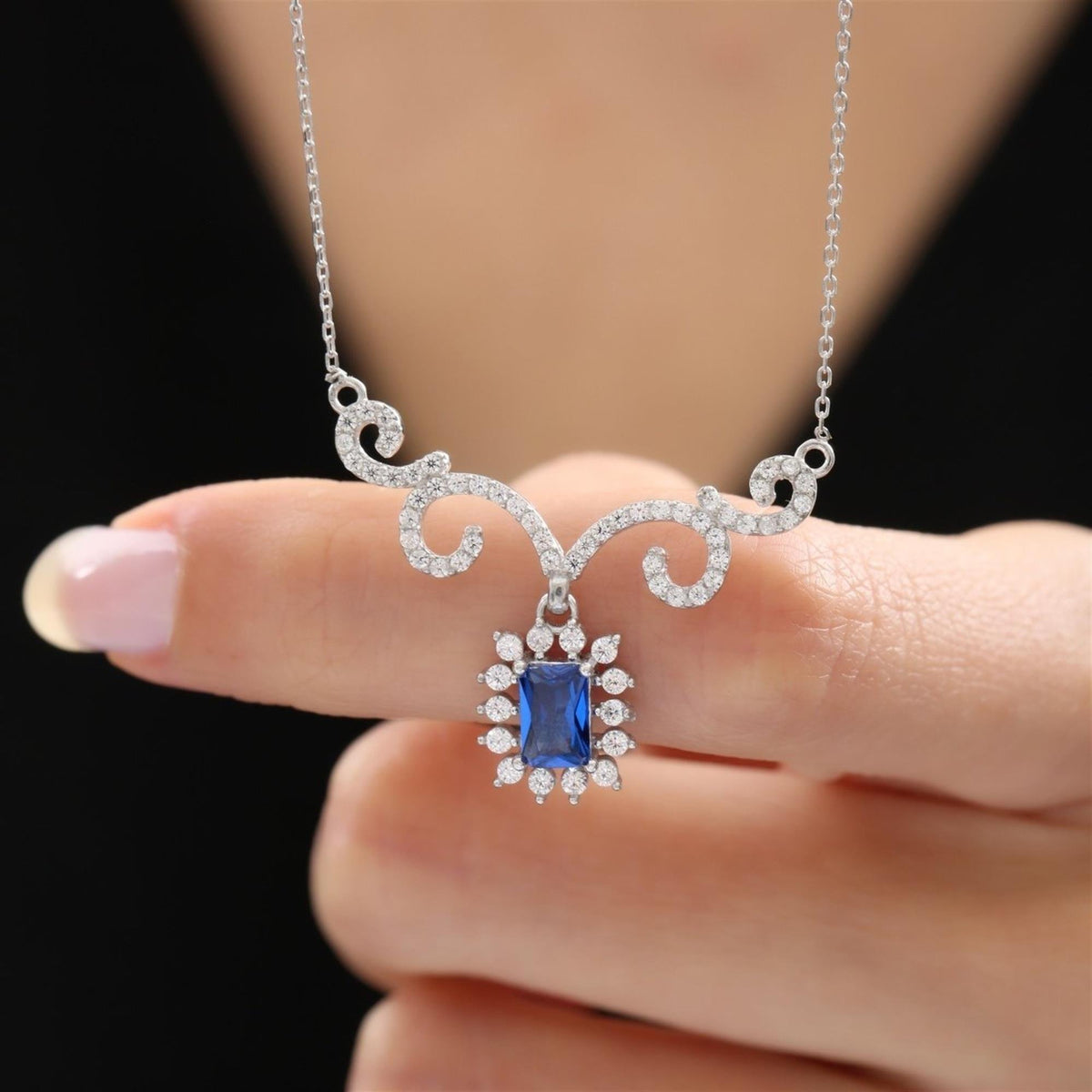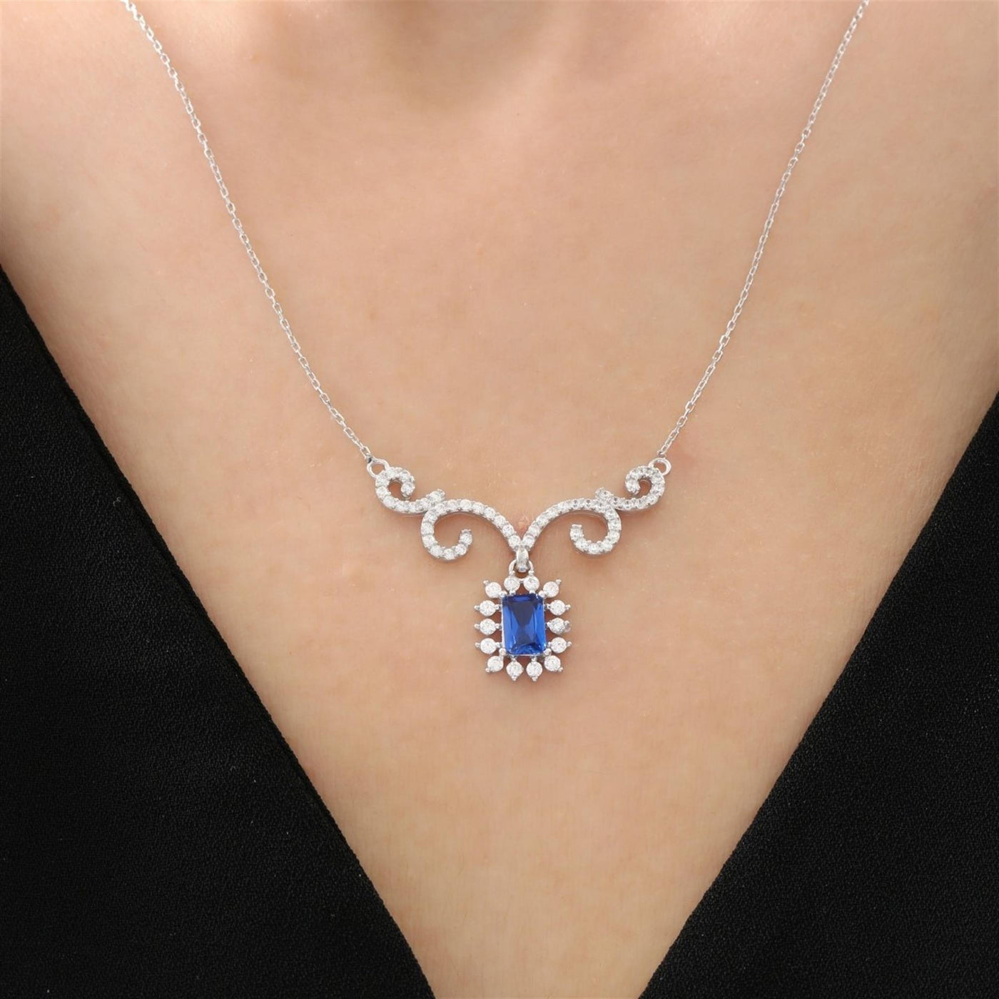 Presented in a luxurious Etossimo Jewelry gift box and bag, the Lustrous Sunstar Baguette Sapphire Color Baroque Romance CZ 925K Sterling Silver Necklace adds a touch of baroque splendor to any fine jewelry collection.