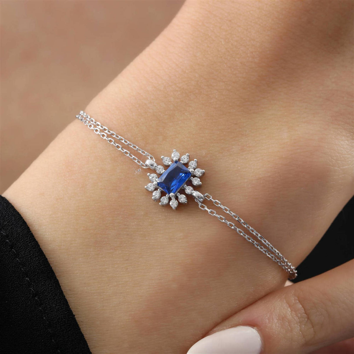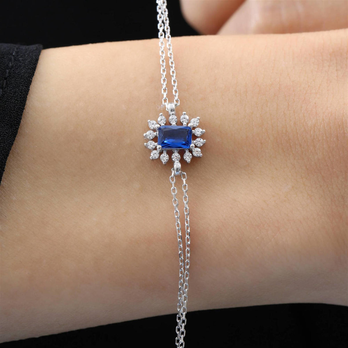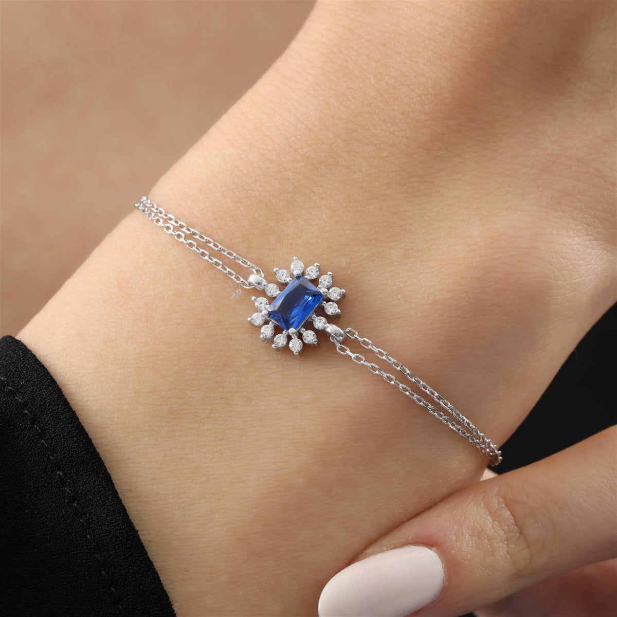 Lustrous Sunstar Sapphire Color CZ 925K Sterling Silver Bracelet