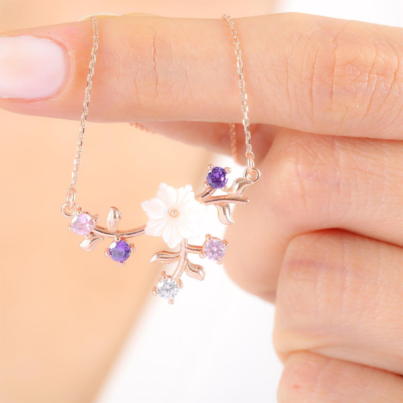 Magnolia Floral Mix Harmony CZ Rose Gold 925K Sterling Silver Necklace