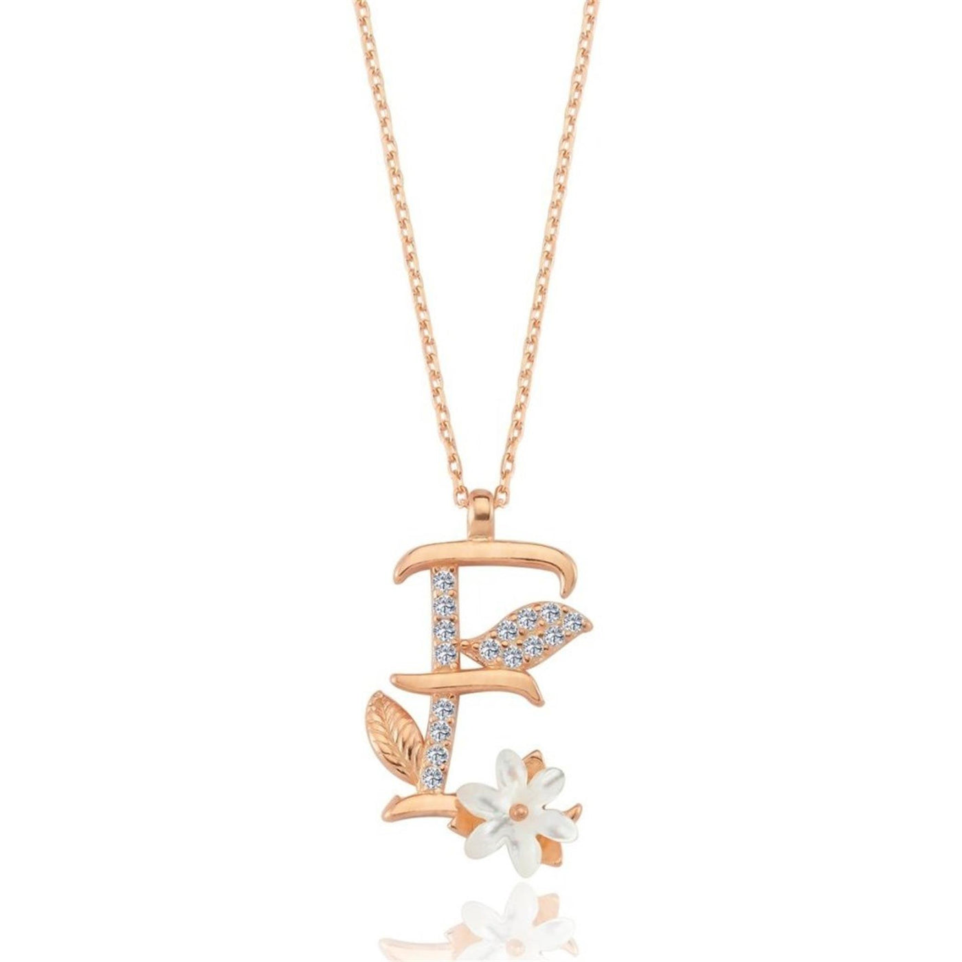 Magnolia Sparkle E Initial CZ Rose Gold 925K Sterling Silver Necklace