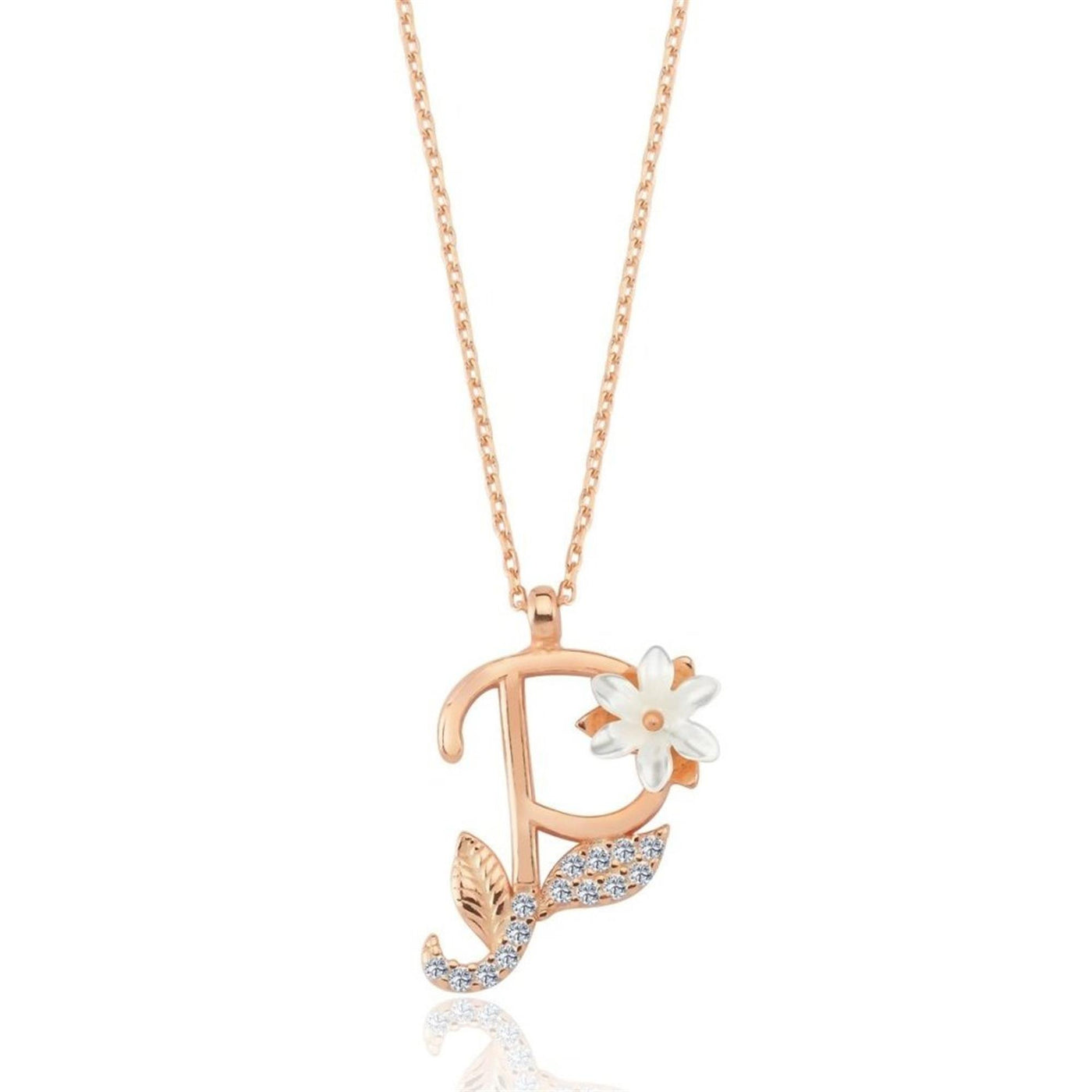Magnolia Sparkle P Initial CZ Rose Gold 925K Sterling Silver Necklace