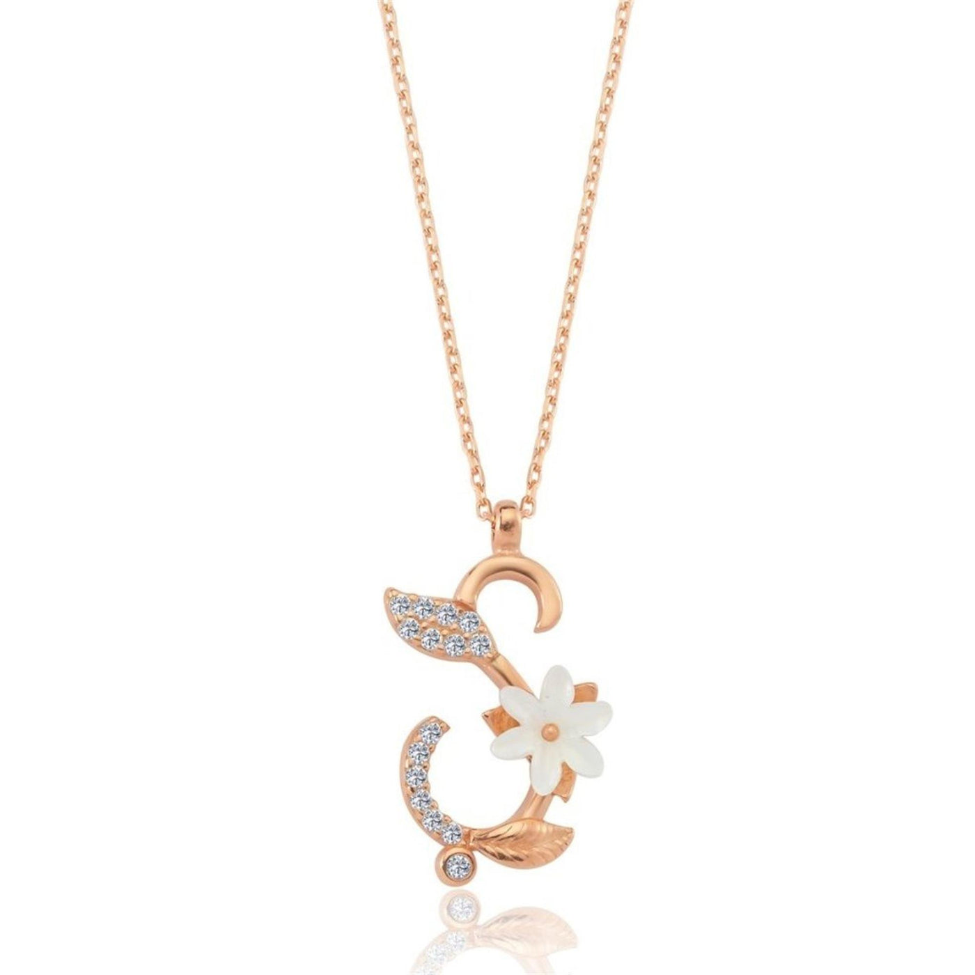 Magnolia Sparkle Ş Initial CZ Rose Gold 925K Sterling Silver Necklace