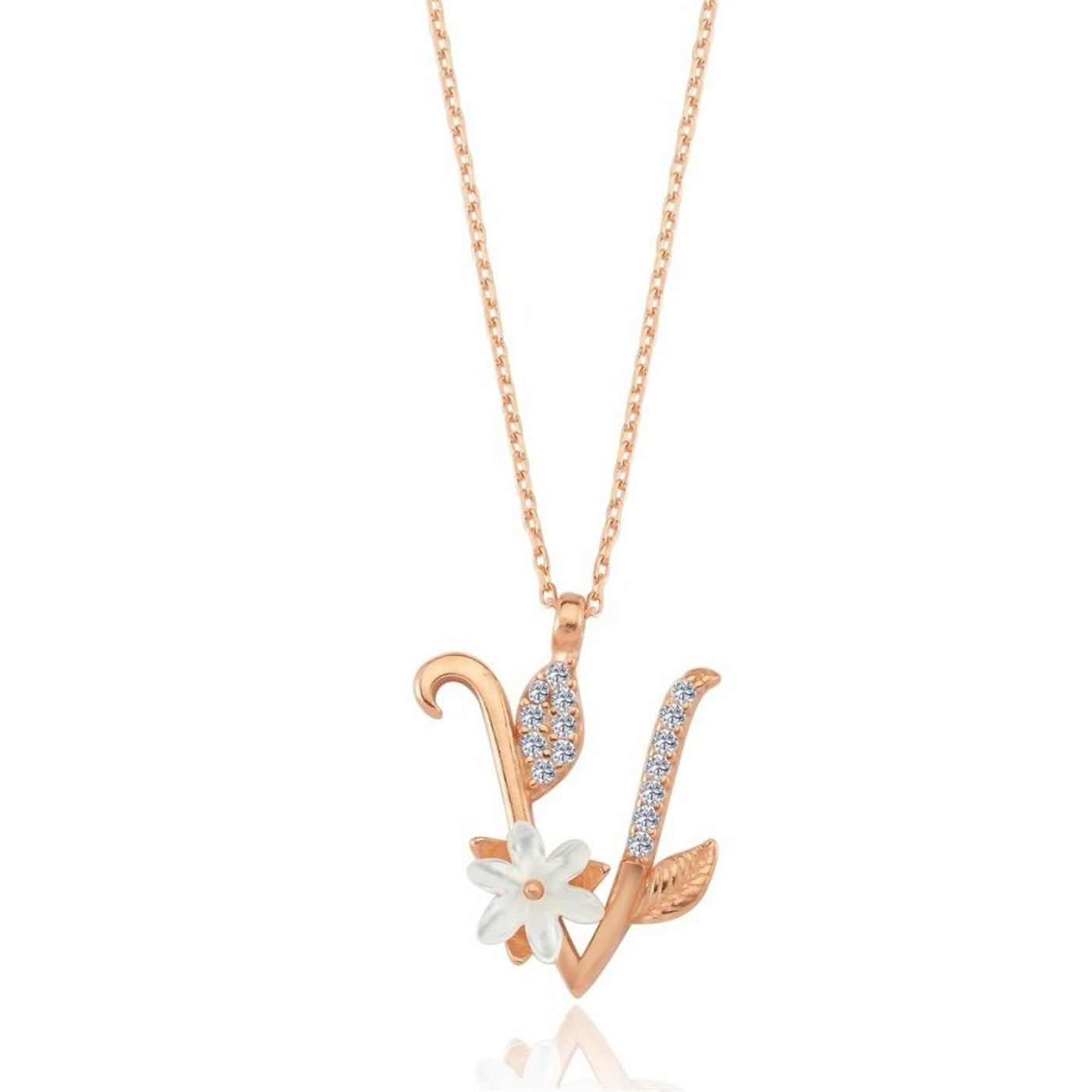 Magnolia Sparkle V Initial CZ Rose Gold 925K Sterling Silver Necklace