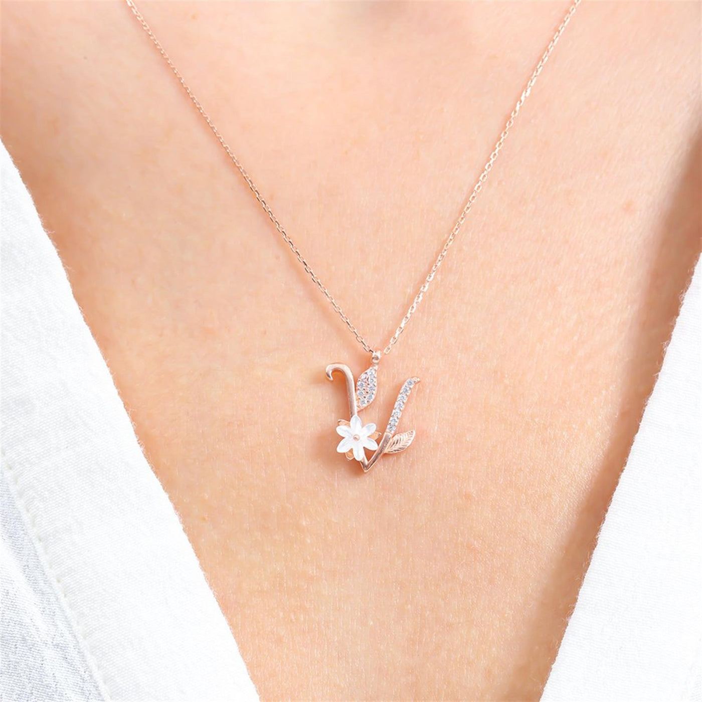 Meticulously crafted from rose gold plated 925K sterling silver, this piece blends floral artistry with modern luxury. Whether worn as a signature initial or a cherished gift, it offers refined beauty for every moment.