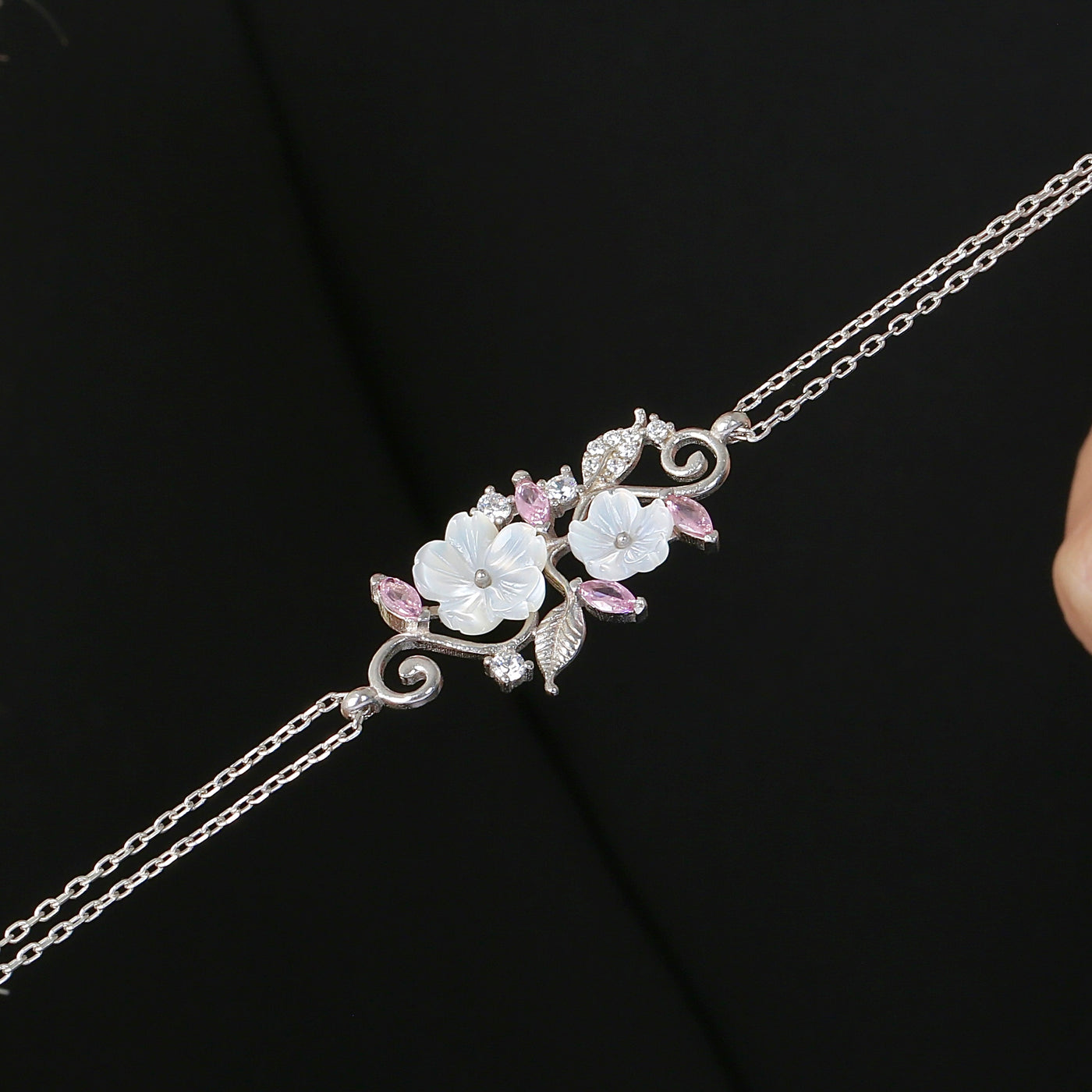 Expertly crafted from 925K sterling silver, this bracelet offers exceptional durability while maintaining a sophisticated charm. The soft pink hue of the gemstones adds a subtle yet striking contrast against the silver, making it perfect for both casual and formal occasions.