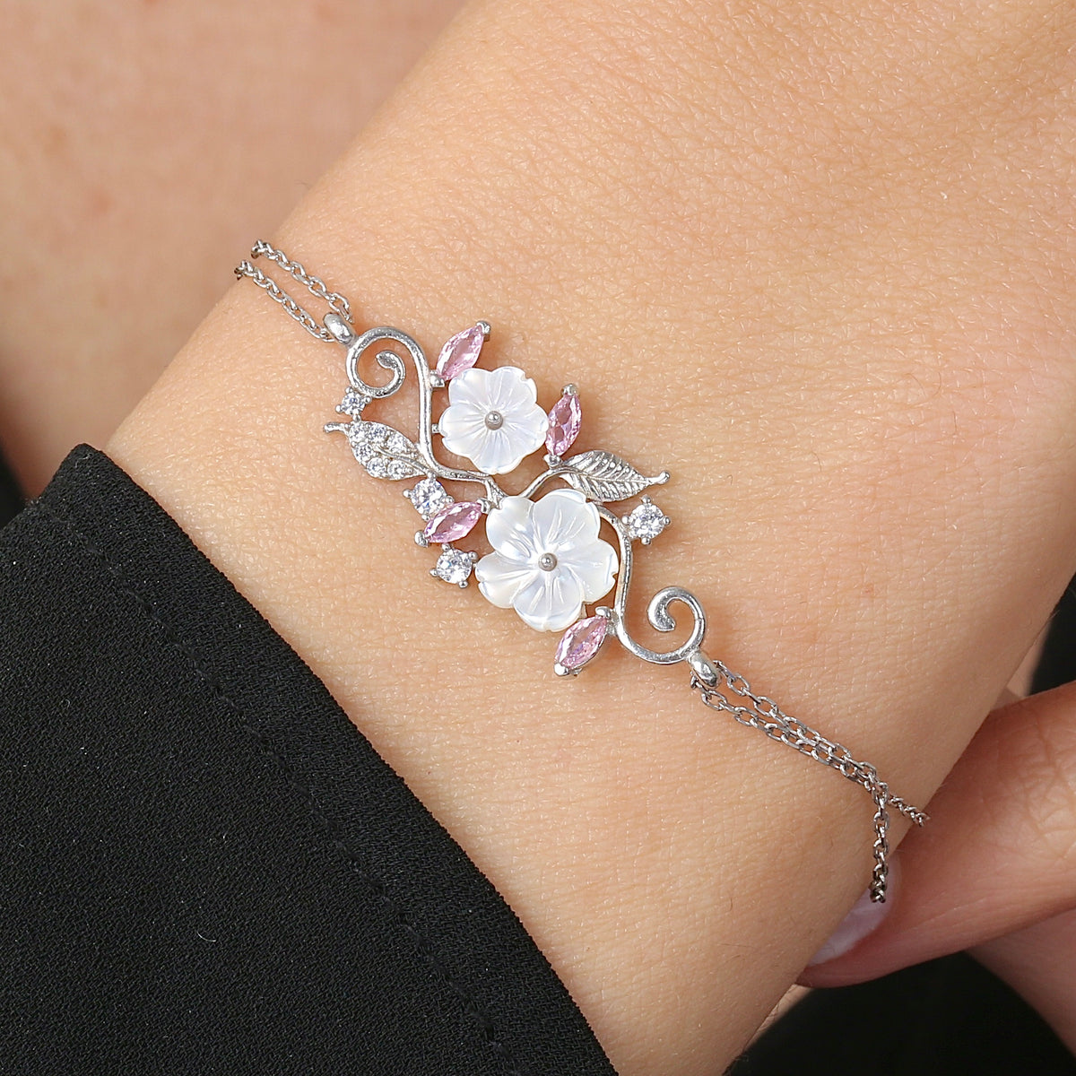 Magnolia Symphony Vine with Pink Gem CZ 925K Sterling Silver Bracelet