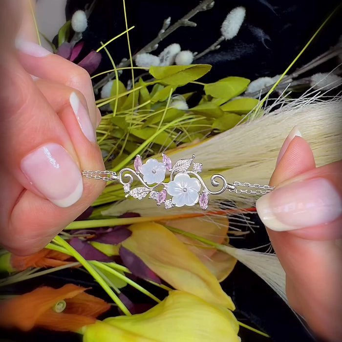 Discover the harmonious beauty of nature with the Magnolia Symphony Vine with Pink Gem CZ 925K Sterling Silver Bracelet, a piece that effortlessly blends delicate floral elegance with a pop of vibrant color. Featuring exquisite pink cubic zirconia gemstones, this bracelet mimics the graceful vine of a magnolia tree in full bloom, bringing a fresh and feminine touch to your style.