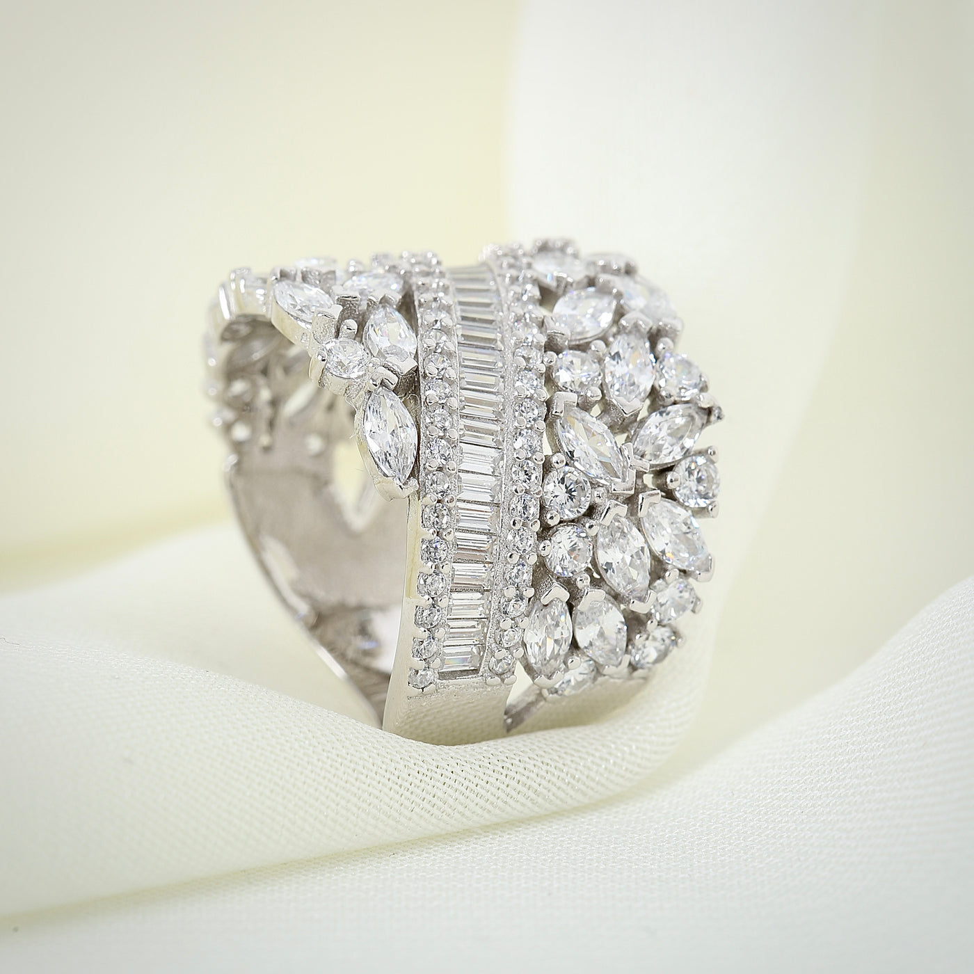 Majestic Crystal Garden Band CZ 925K Sterling Silver Ring