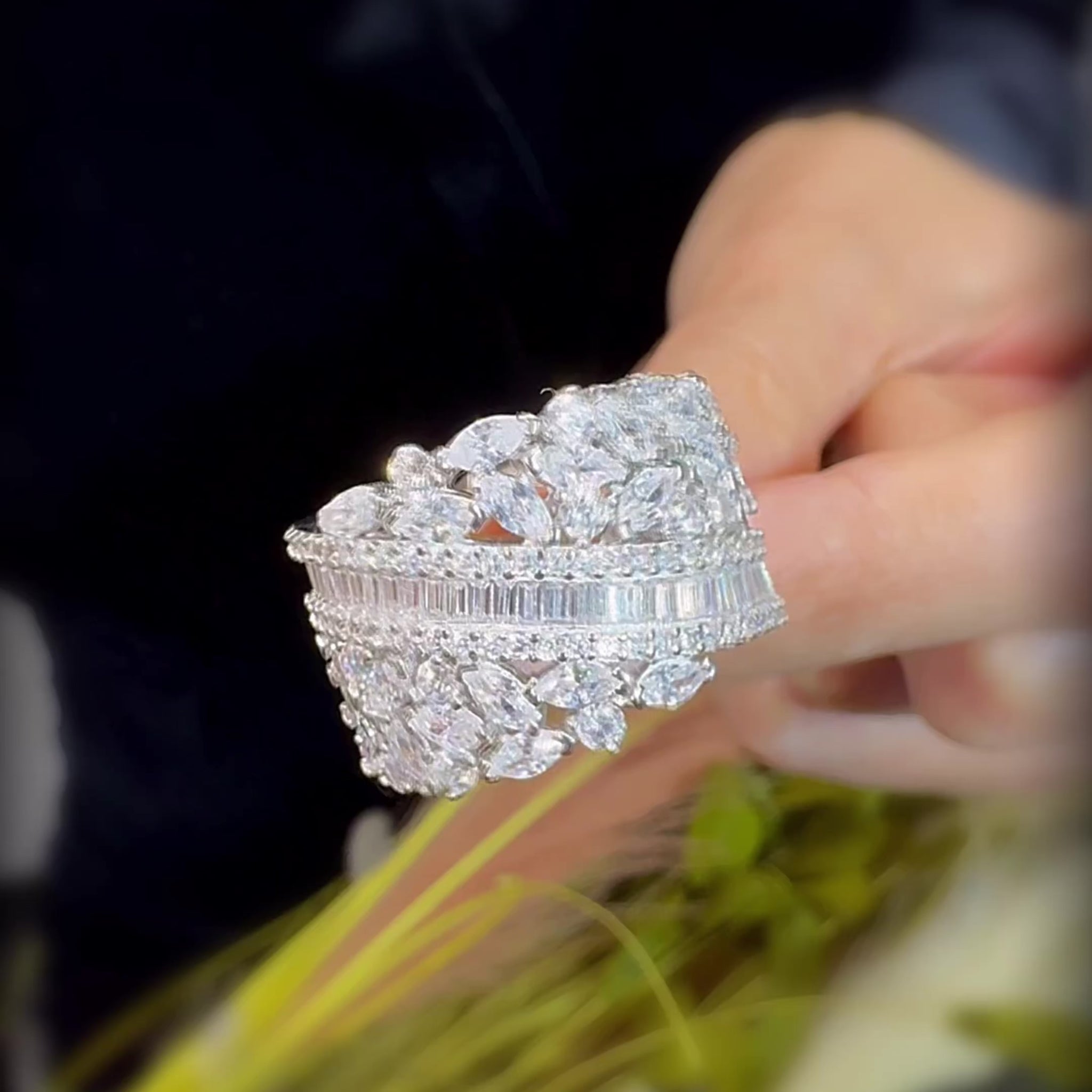 Presented in a luxurious Etossimo Jewelry gift box and bag, the Majestic Crystal Garden Band invites you to adorn your fingers with the brilliance of a garden kissed by light. A timeless gift of grace and natural charm.