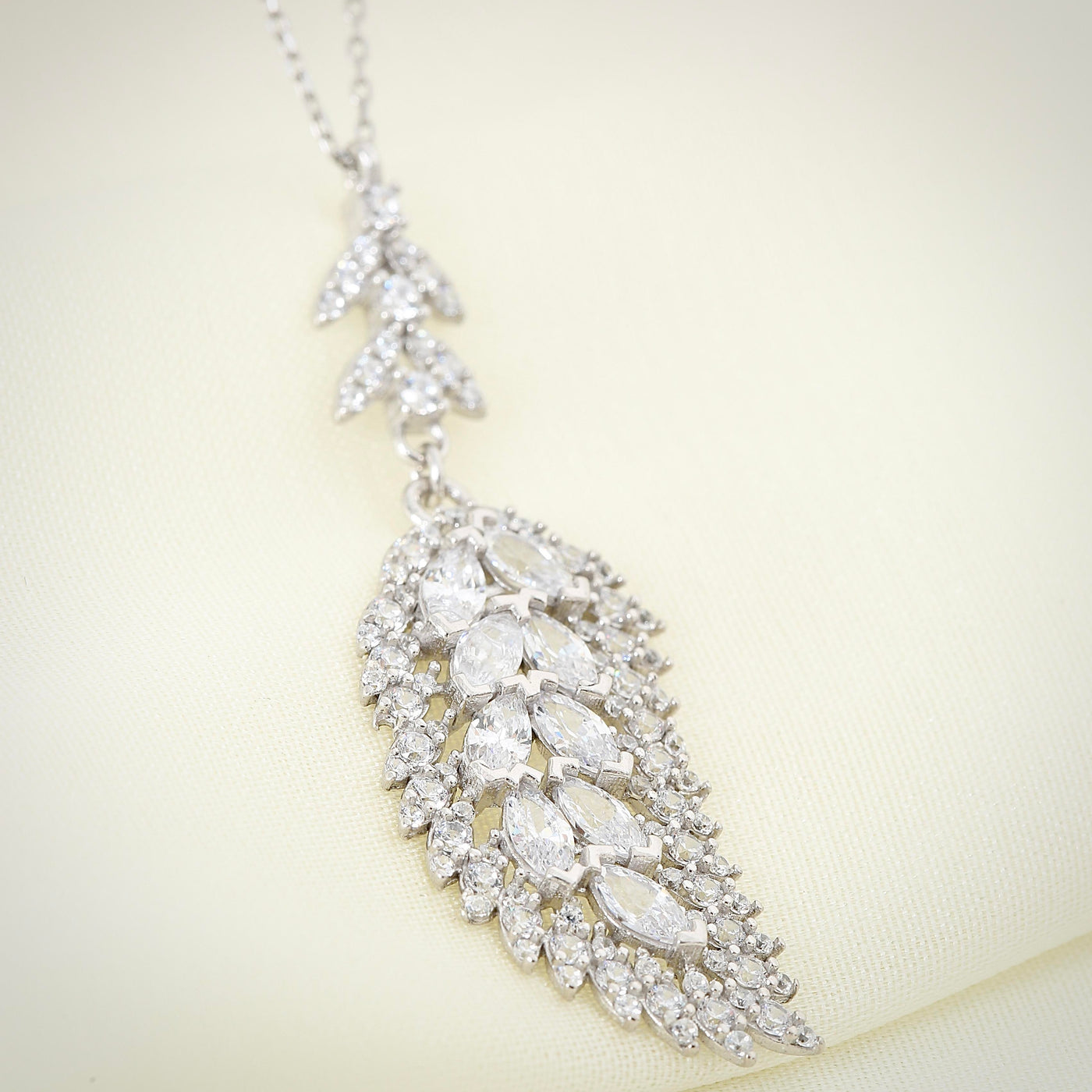 Majestic Elegance Angelic Leaves CZ 925K Sterling Silver Necklace