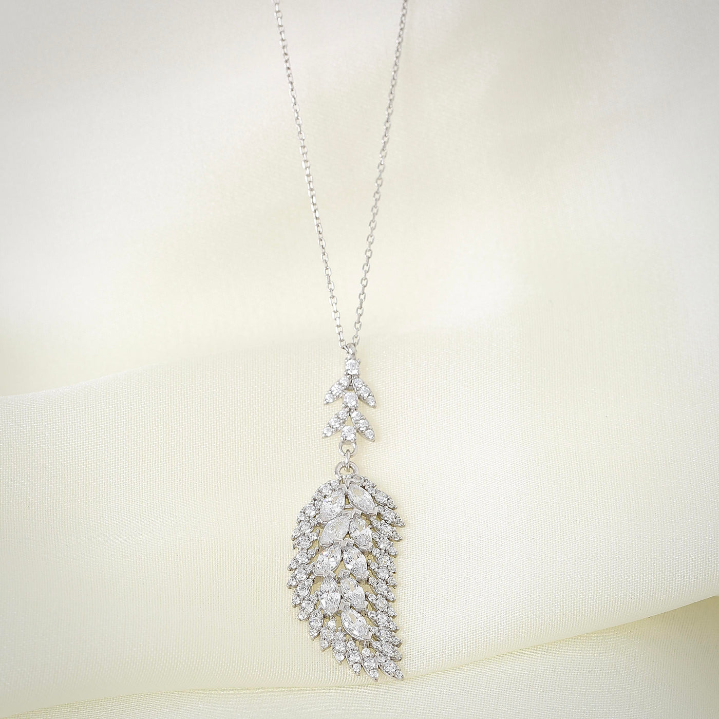 Presented in a luxurious Etossimo Jewelry gift box and bag, the Majestic Elegance Angelic Leaves CZ 925K Sterling Silver Necklace is a graceful gift or a beloved personal treasure that evokes timeless beauty.