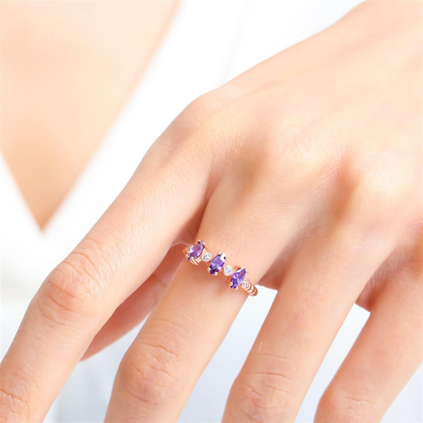 Unveil your inner glow with the Marquise Spark Amethyst Color CZ Rose Gold 925K Sterling Silver Ring. Adorned with marquise-cut amethyst color cubic zirconia stones, this design reflects the calming beauty of rich purple hues—symbolizing creativity, balance, and graceful strength. The rose gold finish enhances its warmth and femininity with a modern touch.