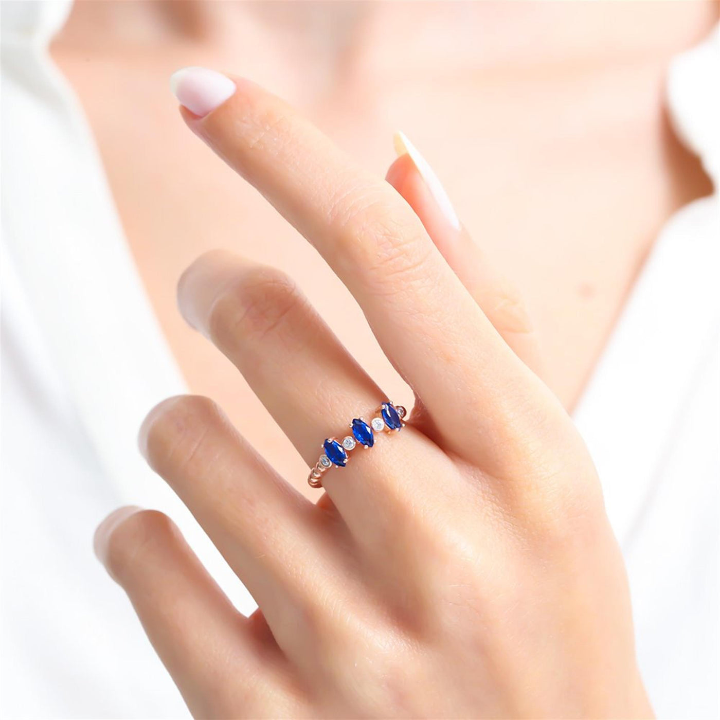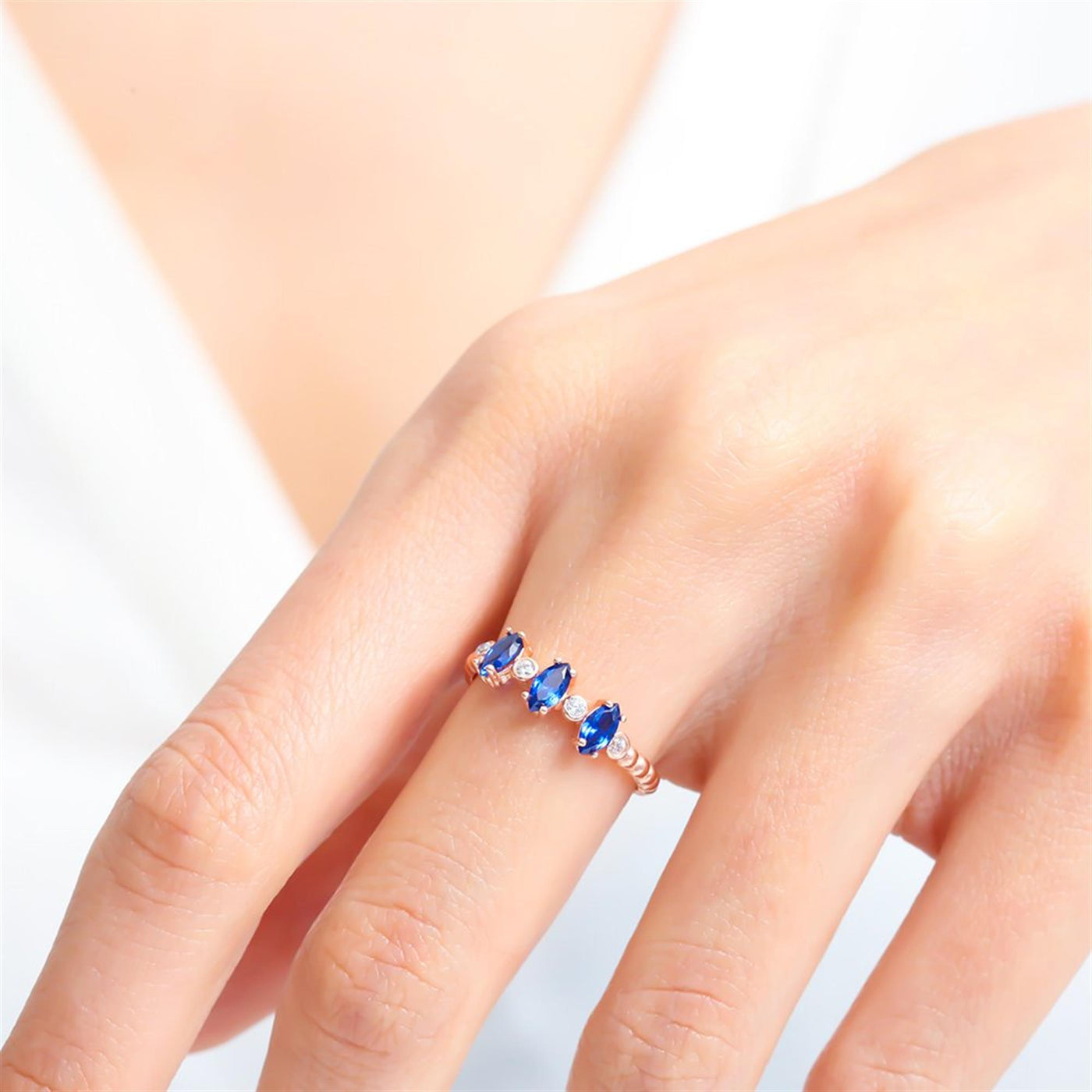 Let elegance shine with the Marquise Spark Sapphire Color CZ Rose Gold 925K Sterling Silver Ring. Featuring marquise-cut sapphire color cubic zirconia stones arranged in a radiant design, this ring captures the beauty of deep blue hues—symbolizing wisdom, serenity, and refined sophistication. The rose gold finish adds a warm, contemporary glow to its timeless silhouette.