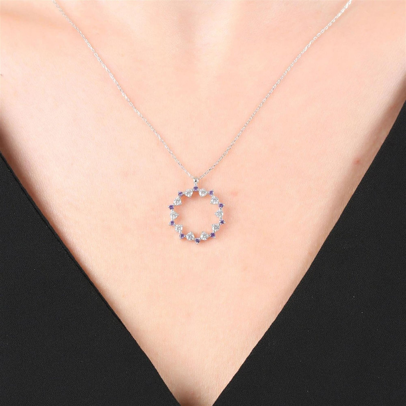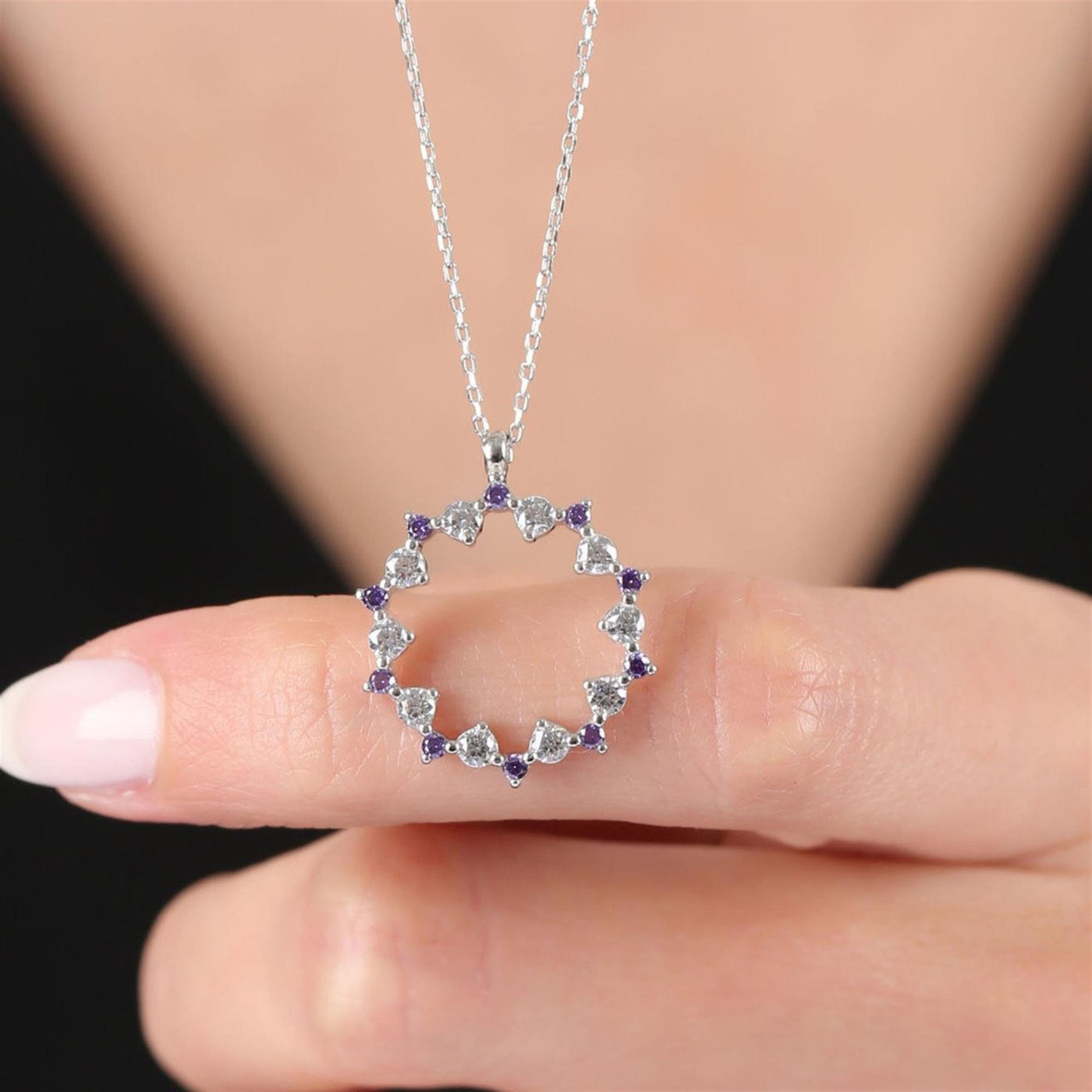 Moonlit Circle Grace Amethyst Color CZ 925K Sterling Silver Necklace