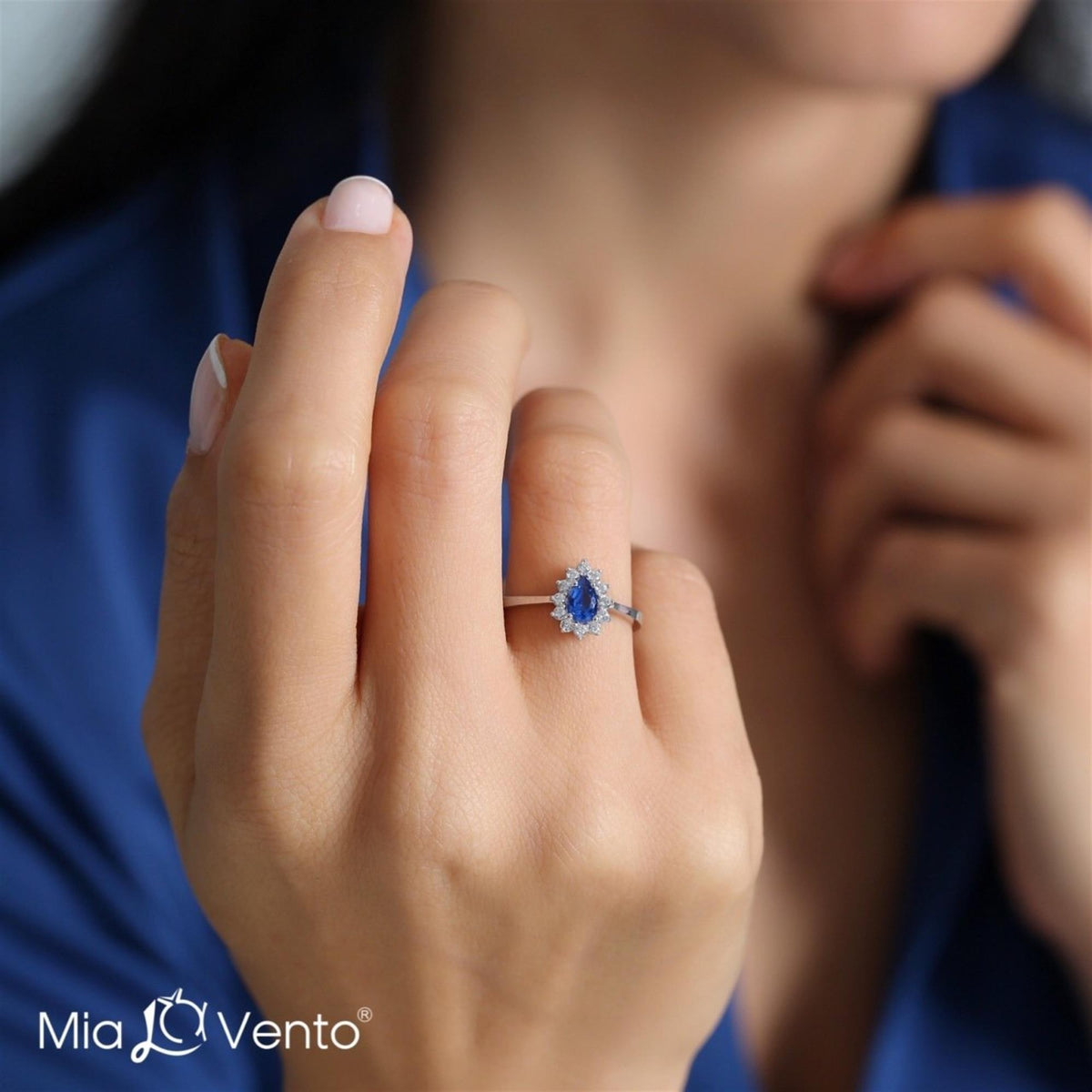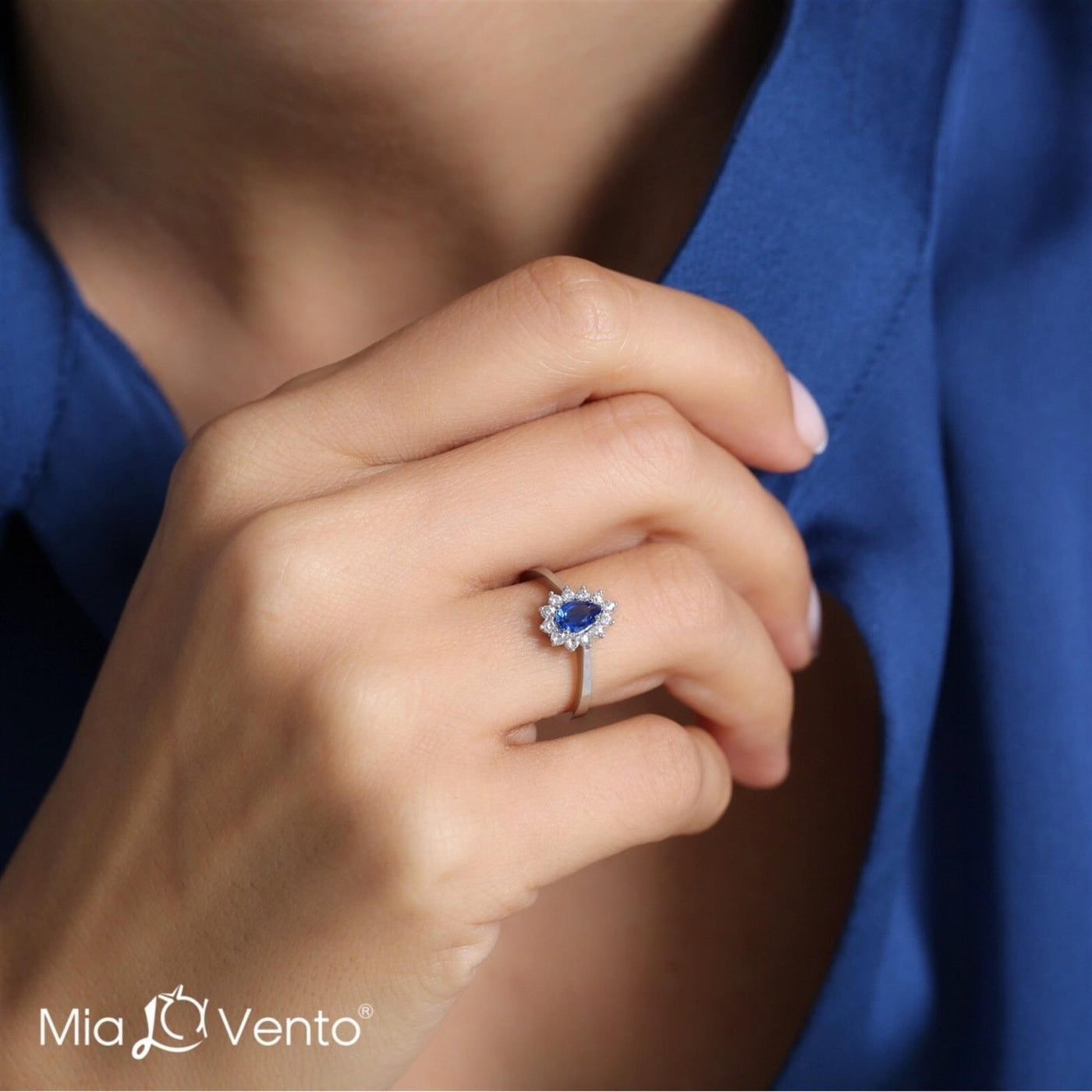 Noble Sapphire Color Teardrop CZ 925K Sterling Silver Ring