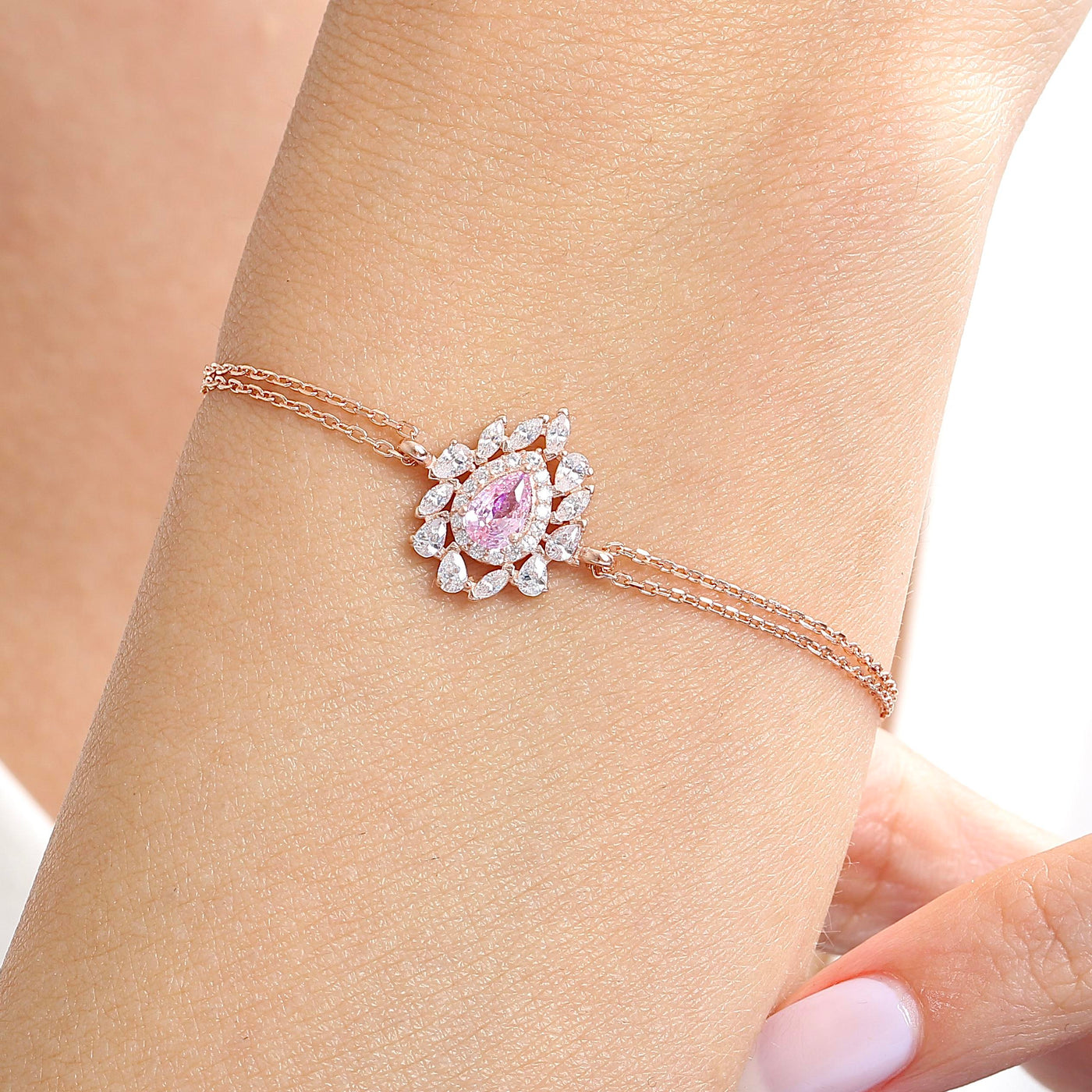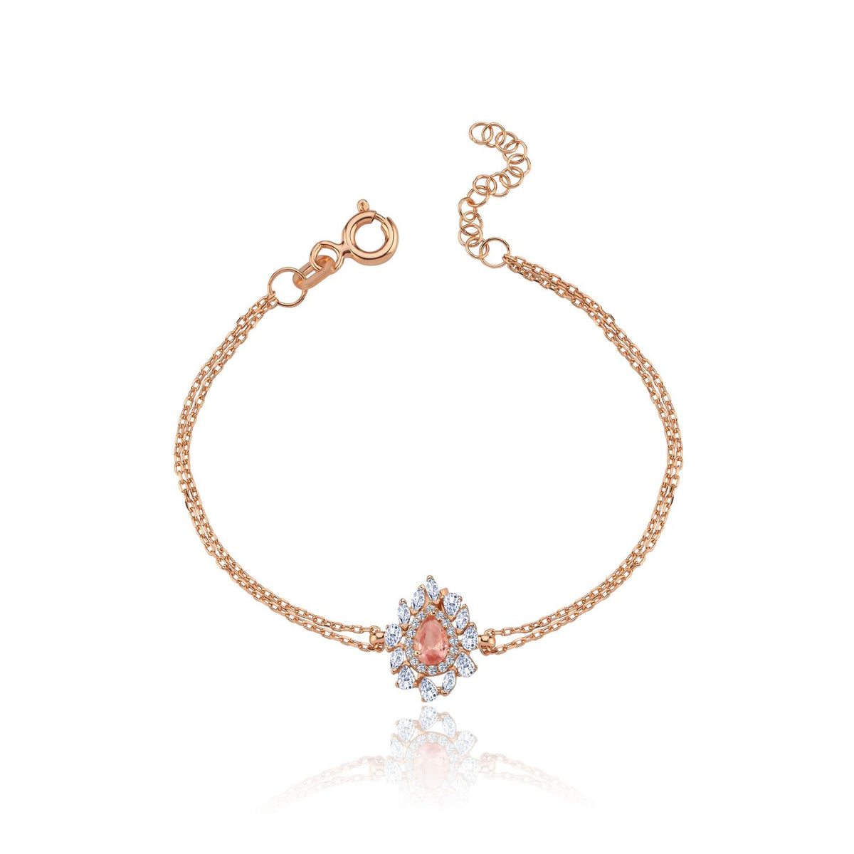 Opulent Pink Stone Spark CZ Rose Gold 925K Sterling Silver Bracelet
