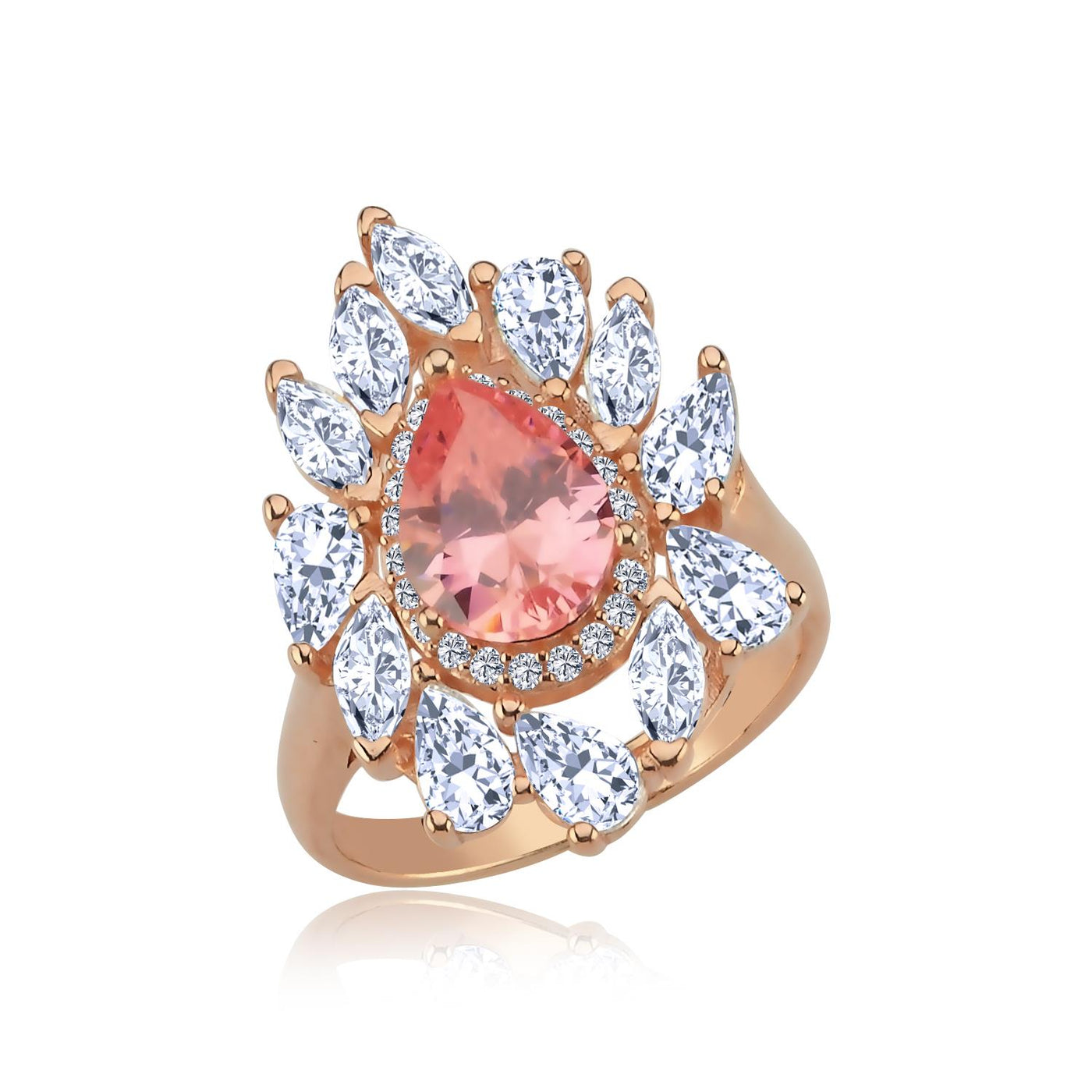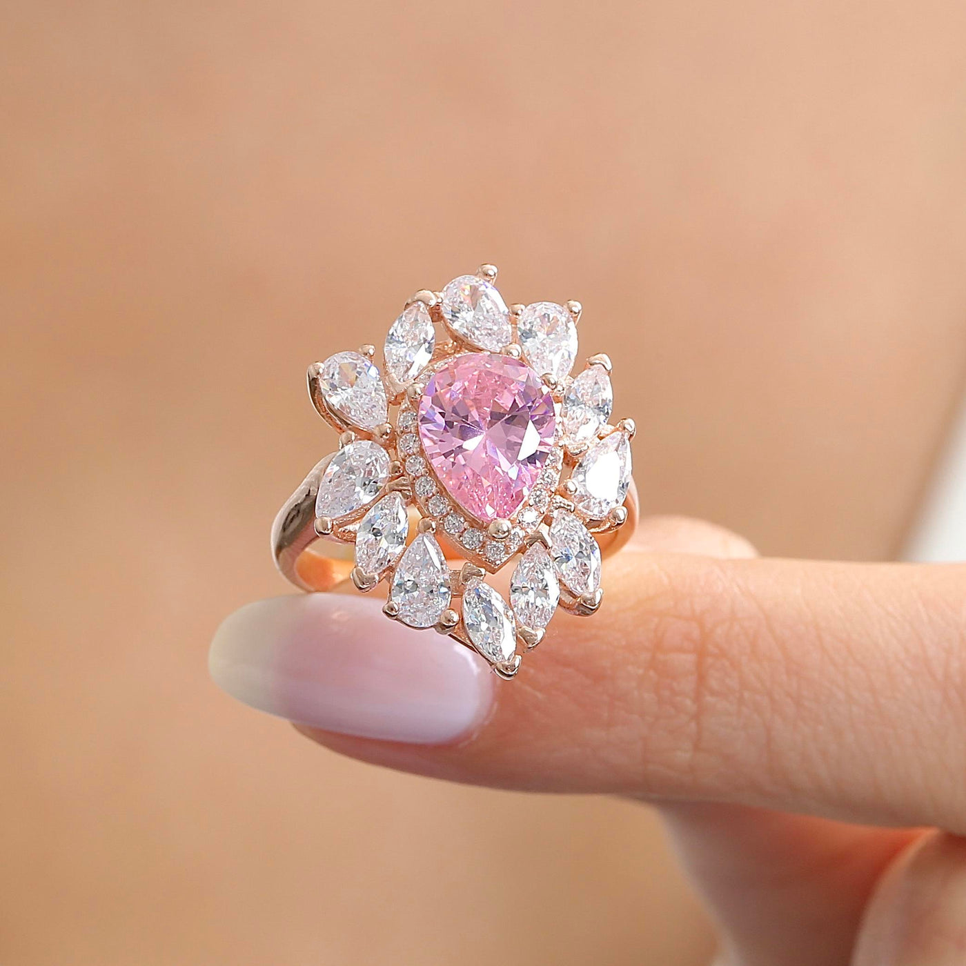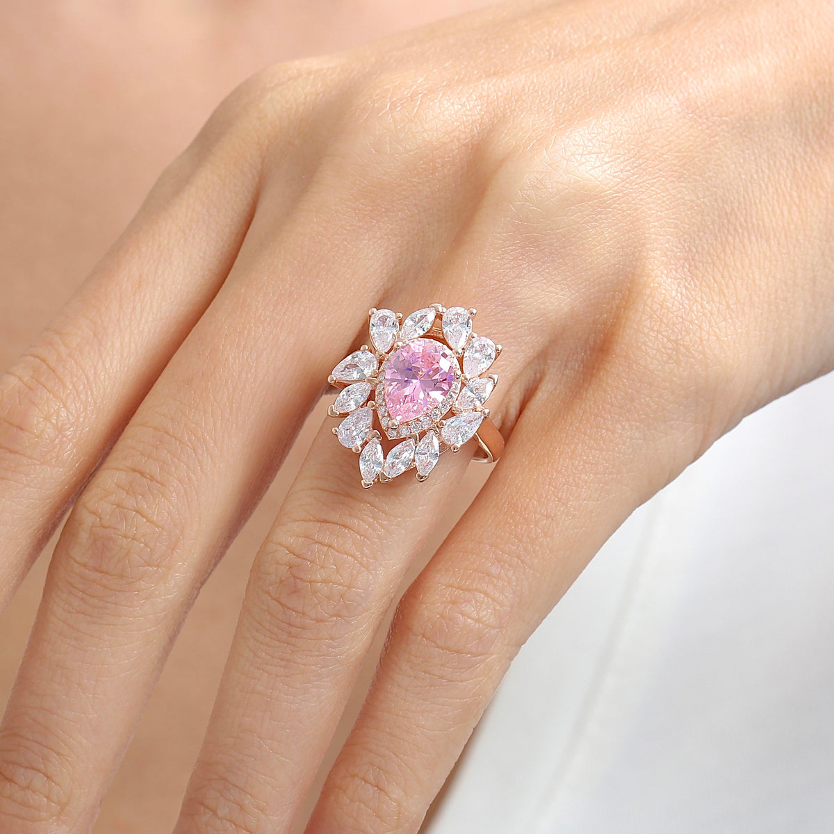 Opulent Pink Stone Spark CZ Rose Gold 925K Sterling Silver Ring